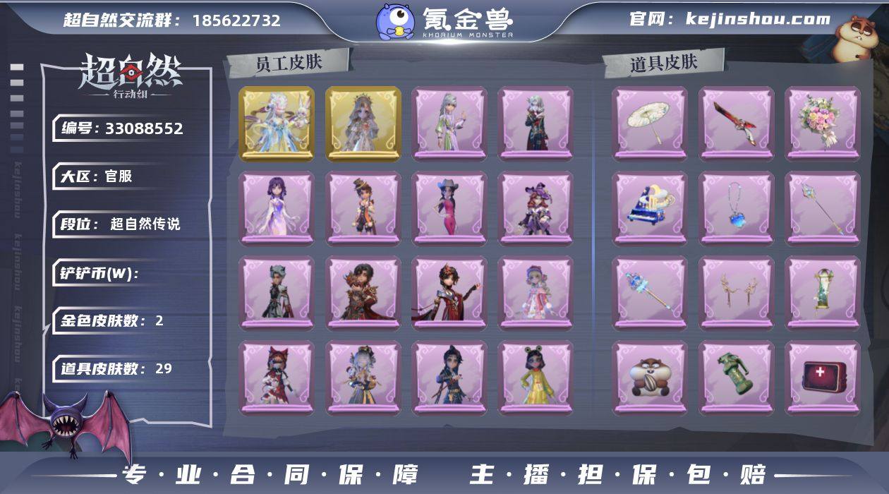 【超自然收藏号】12绝版金动作 2限定金皮 4400万币 400段 官服可换绑 【超自然收藏号】12绝版金动作 2限定金皮 4400万币 400段 官服可换绑 描述 🔥 账号核心亮点(全是硬通货) 1. 12个绝版金动作(不再返场) 孤身摇、心跳摇、luvaboy、小雨摇、舞台中心、DL摇、打气舞、九万字舞、打车摇、新年摇、不孬摇、金城舞 2. 双限定金皮 薇薇安·圣光之谕、莉莉·瑶台梦(活动限定,已下架) 3. 海量限定紫皮 非遗系列、马年限定·琢玉怀乡、叶罗丽联动、LOOPY联动、1周年庆宴绮愿、魔盒限定等23个 4. 资源爆炸 4429万游戏币、400高段位、满级梦居+双主题、满级农场、多套限定紫挂、金工牌背景 ✅ 官服、可换绑手机号、可实名过户、无封禁记录 ✅ 安全担保,支持平台验号 ✅ 诚心出,可小砍,非诚勿扰