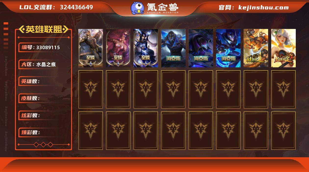 [18352883]3终极 17神话 87限定 57传说 109史诗 559皮肤 173炫彩 171英雄 可二次 可修改实名