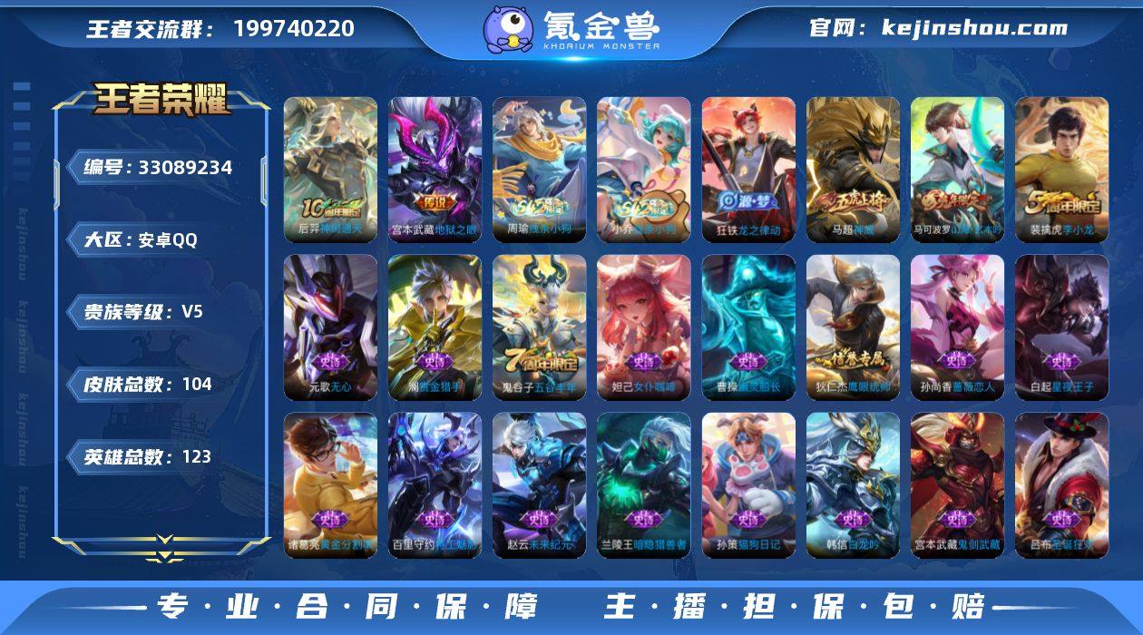 【伽罗珍品4个高质量传说多限定3个性按键】安卓Q-V5-最强王者段位-123英雄-104皮肤-1珍品传说-4传说-29史诗【英雄全皮】:孙权全皮,敖隐全皮【珍品传说】:伽罗沧流箭【传说皮肤】:云缨神骥越千峰,马超神骥逐星野,后羿神树通天,宫本武藏地狱之眼【限定皮肤】:狄仁杰阴阳师,赵云皇家上将,孙尚香蔷薇恋人,元歌无心,典韦穷奇,马可波罗山海玄木吟,项羽海滩派对,老夫子醍醐杖,兰陵王金庭之子,李元芳云中旅人,钟馗驱傩正仪,鬼谷子原初探秘者,鬼谷子五谷丰年,苏烈千军破阵,弈星混沌棋,沈梦溪大漠名商,明世隐疑决卦,裴擒虎李小龙,裴擒虎擒涛扼浪,狂铁御狮,鲁班大师探海日志,桑启海盐诗旅,鬼谷子天穹祈灯【年限皮肤】:马可波罗山海玄木吟【赛季限定】:典韦穷奇,狂铁御狮,弈星混沌棋,明世隐疑决卦,老夫子醍醐杖,鬼谷子原初探秘者,钟馗驱傩正仪,苏烈千军破阵,兰陵王金庭之子,沈梦溪大漠名商,李元芳云中旅人,桑启海盐诗旅,裴擒虎擒涛扼浪,鲁班大师探海日志,鬼谷子天穹祈灯,亚瑟荣光之誓【战令限定】:周瑜线条小狗,小乔线条小狗【史诗皮肤】:明世隐百晓客,周瑜线条小狗,小乔线条小狗,狂铁龙之律动,马可波罗山海玄木吟,元歌无心,鬼谷...