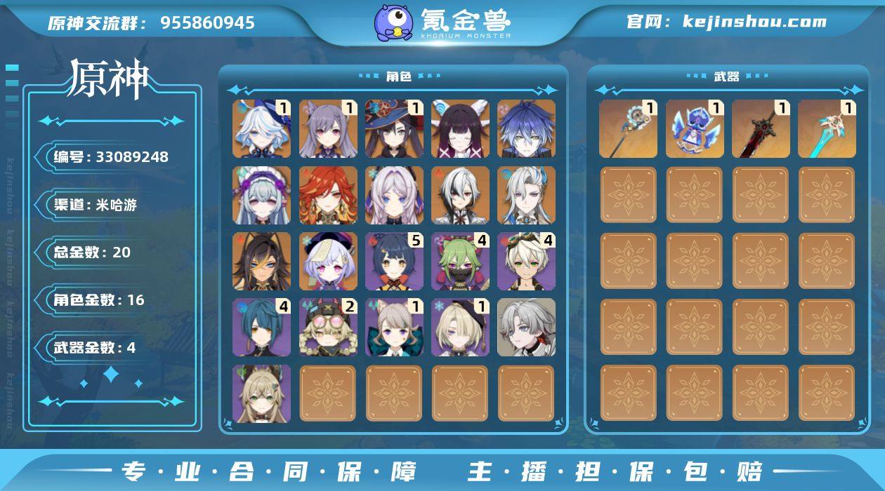 20黄! 冒险等级: 57 1命金色角色: 一命刻晴,一命莫娜,一命芙宁娜 0命金色角色: 七七,迪希雅,那维莱特,阿蕾奇诺,玛薇卡,茜特菈莉,梦见月瑞希,菲林斯,哥伦比娅 拥有武器: 狼的末路,天空之刃,祭星者之望,支离轮光 1精武器: 狼的末路,天空之刃,祭星者之望,支离轮光 亮点: 平民练度非常高,圣遗物都是四件套,所以暴击率不用担心