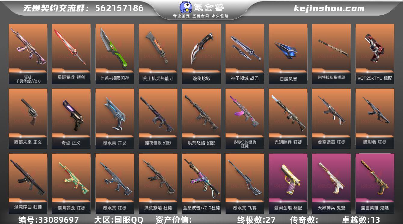 【NF14】【英雄】:幻棱,炼狱,维斯,暮蝶,钛狐,壹决,铁臂,捷风,雷兹,幽影,不死鸟,贤者,猎枭,蝰蛇,零,芮娜,奇乐,尚勃勒,霓虹,斯凯,夜露,星礈,K/O,海神,盖可,黑梦,钢锁 【近战武器】:近战武器-碎心裂刃,近战武器-穿花蝴蝶,近战武器-威龙之刃,近战武器-超限闪存 匕首,近战武器-荒土机兵 热能刀,近战武器-诡秘蛇影 军刀,近战武器-神圣领域 战刀,近战武器-日耀风暴 遗器,近战武器-阿特拉斯指挥部 甩棍,近战武器-星际猎兵 短剑 【狂徒】:狂徒-光明哨兵,狂徒-洪荒怒焰,狂徒-混沌序曲,狂徒-全息波普//2.0,狂徒-塑水宗,狂徒-偃月苍龙,狂徒-虚空遗器,狂徒-噬影者,狂徒-多弥尔的复仇,狂徒-千灵华绽//2.0,狂徒-掠影,狂徒-耀鳞威龙,狂徒-紫阙金琅,狂徒-离子武器//2.0,狂徒-赤焰铁骥,狂徒-荒土机兵,狂徒-诡秘蛇影 【幻影】:幻影-黯夜怪谈,幻影-洪荒怒焰,幻影-盖亚的复仇//2.0,幻影-侦察力量,幻影-超限闪存,幻影-神圣领域,幻影-纳米打击,幻影-末日之翼 【戍卫】:戍卫-天界神兵,戍卫-浮光跃金,戍卫-逆冲蛮牛,戍卫-月球哨兵,戍卫-折光棱晶 【獠犬】:獠犬-神圣领域,獠犬-模拟赫兹,獠犬-逆冲蛮牛 【冥驹】:冥驹-起源,冥驹...