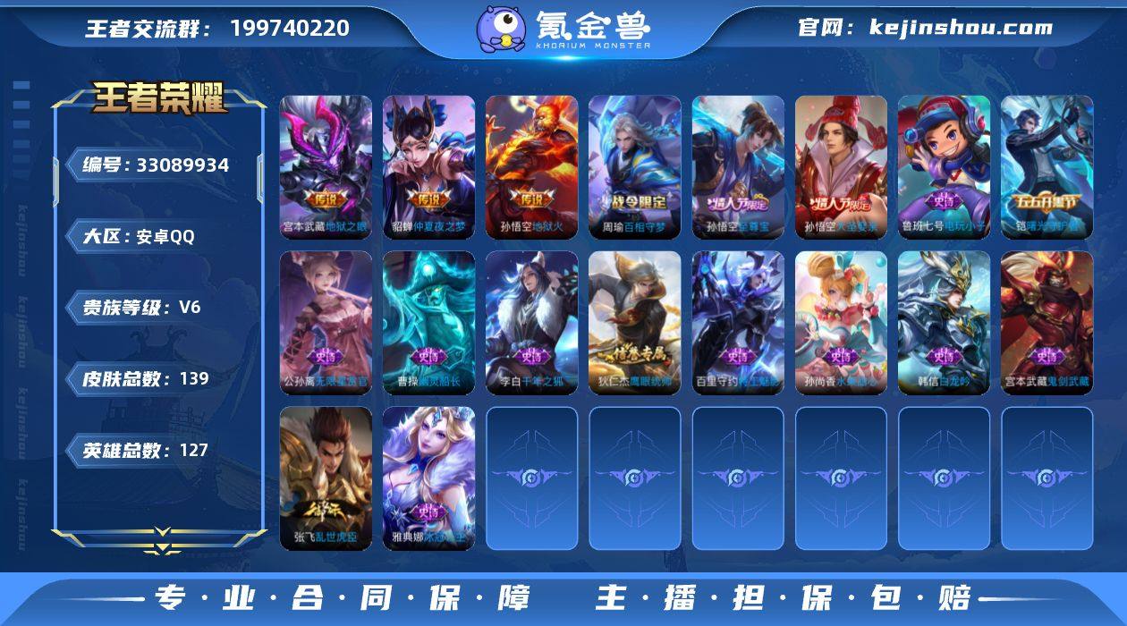 V6 4传说 127英雄 139皮肤 可修改实名 男号