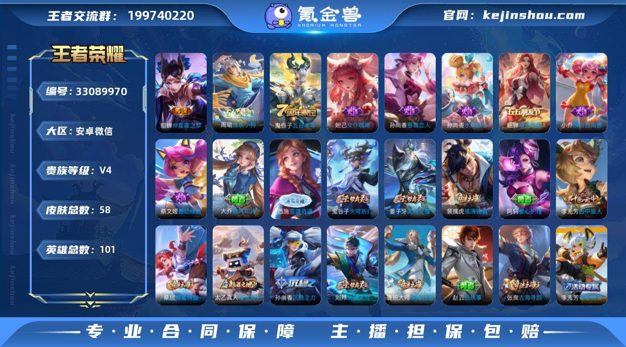 安卓微信区贵4账号,历史最高段位星耀三可二次实名+换绑手机号,仅卖安卓区游戏角色,微信账号及苹果区角色自留,不卖微信。 貂蝉仲夏夜之梦、孙尚香蔷薇恋人,58皮肤101英雄,铭文齐全,信誉良好,平台永久包赔,支持验号。
