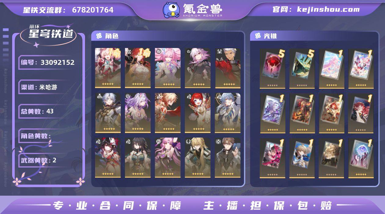总黄数: 43 五星光锥数: 2 开拓等级: 70 开拓者性别: 男 1命金色角色: 1命姬子,1命风堇 精5武器: 精5记一位星神的陨落,精5星海巡航 精1武器: 精1如泥酣眠,精1制胜的瞬间,精1以世界之名,精1银河铁道之夜,精1记忆永不落幕,精1如果时间是一朵花,精1血火啊,燃烧前路,精1让告别,更美一些,精1愿虹光永驻天空,精1爱如此刻永恒 亮点: 【xt192】等级:70/总黄数:43/男主角色黄数:22昔涟,长夜月,Archer,白厄,风堇,遐蝶,万敌,缇宝,星期日,花火,阮•梅,符玄,罗刹,彦卿,克拉拉,杰帕德,布洛妮娅,瓦尔特,姬子,爱如此刻永恒,愿虹光永驻天空,让告别,更美一些,血火啊,燃烧前路,如果时间是一朵花,记忆永不落幕,制胜的瞬间,如泥酣眠,银河铁道之夜,以世界之名,星海巡航,记一位星神的陨落,1命风堇,1命姬子,0命昔涟,0命长夜月,0命Archer,0命白厄,0命遐蝶,0命万敌,0命缇宝,0命星期日,0命花火,0命阮•梅,0命符玄,0命罗刹,0命彦卿,0命克拉拉,0命杰帕德,0命布洛妮娅,0命瓦尔特,精5星海巡航,精5记一位星神的陨落,精1爱如此刻永恒,精1愿虹光永驻天空,精1让告别,更美一些,精1血火啊,燃烧前路,精1如果时间是一朵花,精1记忆永不落幕,精1制胜的瞬间,精1银河铁道之夜,精1如泥酣眠,精1以世界之名
