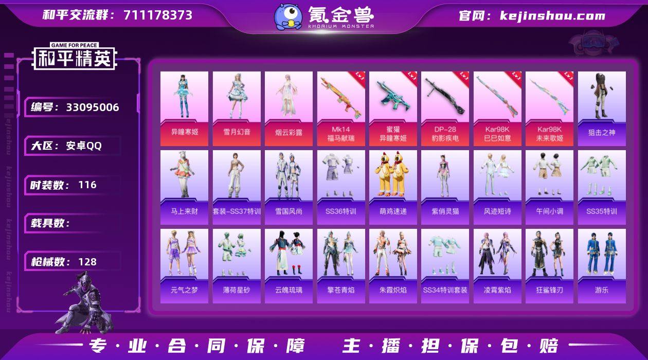 【5特效枪3粉装 秒换绑不用等】 安卓Q区-40671热力值-6印记-116套装-128枪皮 【3粉装】 雪月幻音 角色-异瞳寒姬 角色-烟云彩露【5特效枪】 Mk14-福马献瑞(5级) Kar98K-未来歌姬(6级) 蜜獾-异瞳寒姬(4级) Kar98K-巳巳如意(5级) DP-28-豹影疾电(5级)【141热门】 破蛋小黄鸡 团圆交子 瑞龙福将 冰公主 白色伏地魔 SS27特训 SS26特训 SS25特训 SS22特训 Mk47-洛神天依 M762-橘柚倾心 M416-乌木金纹 GROZA-2B战斗服款 GROZA-田园牧歌 M249-彩虹符号 MG3-幻世战舞者 AKM-虎虎生威 M416-蓝色火焰 长空猛禽 甜蜜熊情侣 特训学院 青涩时光 青年教官 骑行爱好者 魅力单车 六六大吉 猎鹰 蓝色运动 竞技达人朋克 黄色运动 黄色伏地魔 红色运动 黑色伏地魔 春日漫步 风华少年志 M762-瑞龙福将 顶瓜瓜 蝶吟花词 MG-36-薄荷星砂 GROZA-福马献瑞 恋语绒绒 SS34特训 乐音 朱霞炽焰 撬棍-冰晶雪宝 SS18特训 福马献瑞 SS17特训 彩虹兔 SS20特训 凌霄紫焰 龙魂突击队 SS29特训 ACE32-冰晶雪宝 鱼渊荷华 擎苍青焰 M16A4-冰河战士 燕燕于飞 SS31特训 SS33特训 SS32特训 巳巳如意 极速光影 雪绒豹 游乐 焰鹰斗篷 狂鲨锋刃 SS36特训 AKM-江南烟雨 异域银装 智谋强哥 战术大师 JS9-凌霄紫焰 MG-36-凌霄...