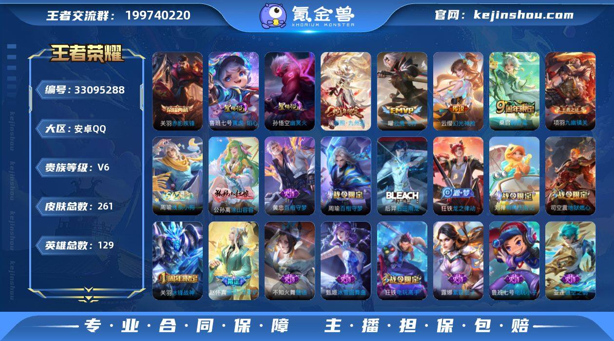 【WZ182169】261皮肤-1典藏皮肤-4传说-75史诗【英雄全皮】:空空儿全皮【荣耀典藏】:关羽赤影疾锋【传说皮肤】:澜愿照九州拓,云缨幻光神枪,桑启鸣野蒿,曜云鹰飞将【限定皮肤】:蔡文姬夏日便利店,虞姬夏日便利店,姜子牙天穹之誓,杨戬破阵退雄兵,狄仁杰阴阳师,赵云皇家上将,嬴政白昼王子,孙尚香蔷薇恋人,庄周高山流水,高渐离死亡摇滚,高渐离玩趣恶龙,钟无艳超时空战士,扁鹊奇幻香踪,芈月幻夜卜梦,元歌无心,狄仁杰魔术师,达摩沙漠行僧,项羽海滩派对,老夫子醍醐杖,关羽冰锋战神,程咬金演武夺筹,兰陵王金庭之子,亚瑟潮玩骑士王,李元芳云中旅人,钟馗神迹守卫,钟馗驱傩正仪,杨戬潮玩骑兵,干将莫邪胡桃夹子,黄忠火炮绅士,苏烈千军破阵,百里玄策原初追逐者,沈梦溪大漠名商,明世隐疑决卦,裴擒虎李小龙,裴擒虎擒涛扼浪,狂铁电玩高手,上官婉儿梁祝,嫦娥暖冬兔眠,西施玲珑珍味,鲁班大师探海日志,桑启海盐诗旅,暃星界游侠,戈娅驭风魔法,艾琳流音漫舞,司空震地狱燃心,阿古朵江河有灵,张良古海寻踪,蒙犽百解令,蒙恬荣光圣徽,高渐离燃音魔法,妲己灵卜魔法,鬼谷子天穹祈灯,沈梦溪龙舞盛年,鲁班七号蔬乡物语,李元芳蔬乡物语,刘邦剑...