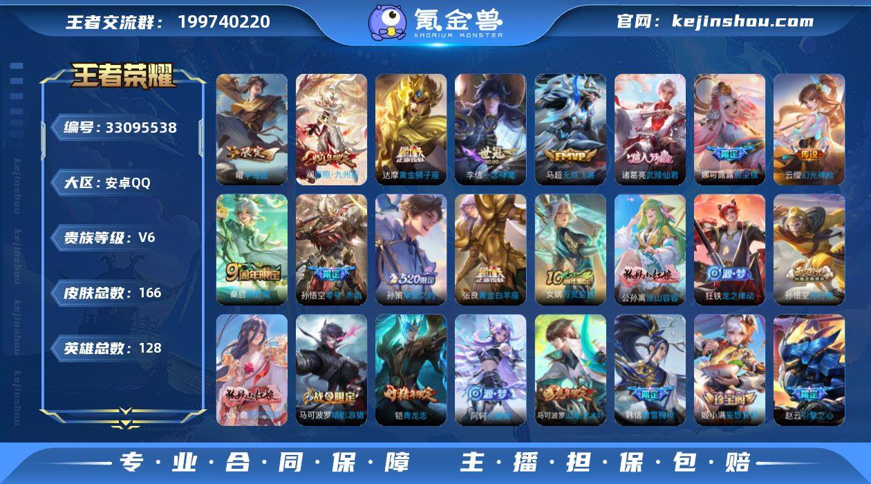 安卓Q-V7-尊贵铂金IV段位-128英雄-166皮肤-12传说-50史诗HZ264503 【传说皮肤】:澜愿照九州拓,云缨幻光神枪,桑启鸣野蒿,娜可露露前尘镜,马超无双飞将,孙策挚爱之约,曜李逍遥 ,孙悟空零号赤焰,李信一念神魔,张良黄金白羊座,达摩黄金狮子座,诸葛亮武陵仙君 【限定皮肤】:蒙犽顽岩魄,姜子牙天穹之誓,狄仁杰阴阳师,赵云皇家上将,赵云引擎之心,孙尚香蔷薇恋人,白起夜都怪侠,元歌无心,马可波罗暗影游猎,马可波罗山海玄木吟,狄仁杰魔术师,狄仁杰万华元夜,达摩沙漠行僧,项羽海滩派对,程咬金演武夺筹,韩信傲雪梅枪,王昭君午后时光,兰陵王金庭之子,娜可露露前尘镜,孙悟空美猴王,孙悟空零号赤焰,孙悟空孙行者,后羿如梦令,李元芳云中旅人,钟馗驱傩正仪,鬼谷子五谷丰年,诸葛亮武陵仙君,铠青龙志,沈梦溪大漠名商,明世隐吟游魔法,裴擒虎天狼狩猎者,裴擒虎李小龙,裴擒虎擒涛扼浪,狂铁电玩高手,孙策挚爱之约,曜李逍遥 ,西施玲珑珍味,鲁班大师探海日志,桑启海盐诗旅,戈娅驭风魔法,阿古朵江河有灵,张良古海寻踪,鬼谷子天穹祈灯,姬小满妄想食味,刘邦剑破天穹,周瑜熔金海岸 【年限皮肤】:孙悟空美猴王,铠青龙志,马可波罗山海玄木吟,...