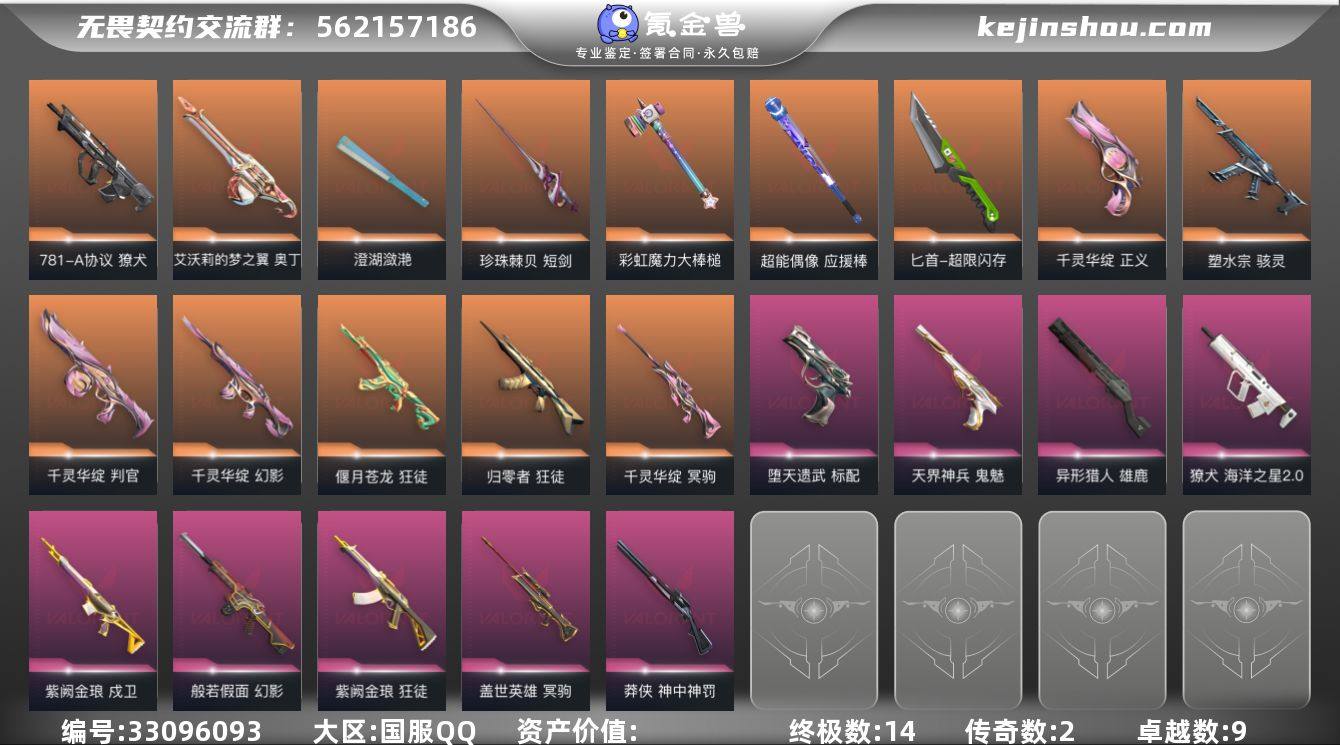 L3138 【性价比】堕天标配 神中神罚莽侠 鱼缸獠犬 异形雄鹿 紫金戍卫 彩虹魔力大棒槌 塑水骇灵 紫金狂徒 猫猫奥丁 威龙之刃 天界鬼魅 莲花套 781獠犬 恶鬼幻影 大圣大狙 苍龙狂徒 归零狂徒 澄湖潋滟库存: 37140剩余VP:81剩余R点:90 段位:未定级(青铜)