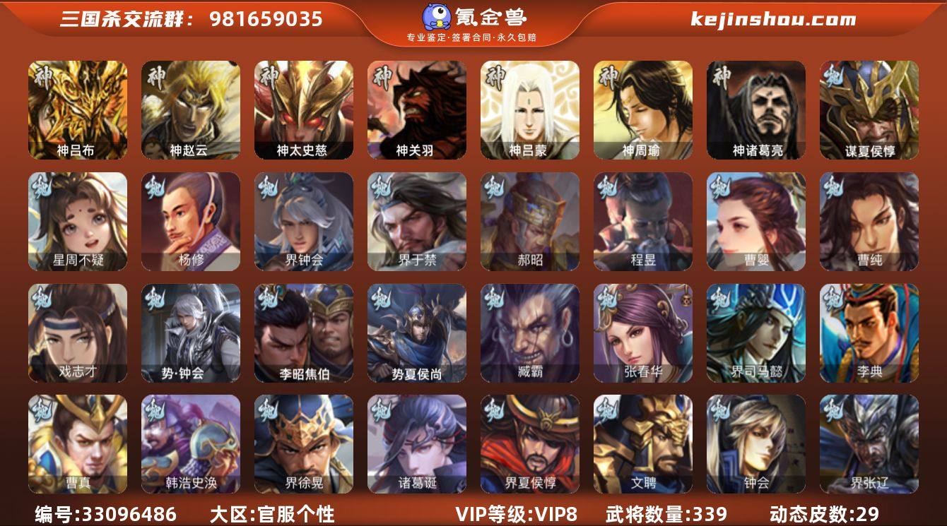 神吕布,神赵云,神太史慈,神诸葛亮,星周不疑,杨修,界钟会,界于禁,郝昭,曹婴,曹纯,戏志才,谋夏侯惇,程昱,势钟会,关索,马云騄,谋赵云,谋马超,界黄忠,花鬘,董允,周处,骆统,界朱然,界徐盛,势陆郁生,左慈,麹义,界李儒,卑弥呼,谋张角,许攸,星董卓,兀突骨,神吕蒙,神周瑜,神关羽,势夏侯尚,SP关羽,SP蔡文姬,乐进,曹昂,诸葛诞,朱灵,文聘,SP姜维,张春华,钟会,曹冲,郭淮,满宠,界王异,界曹操,界司马懿,界夏侯惇,界张辽,界许褚,界郭嘉,李典,曹真,韩浩史涣,陈群,曹叡,曹休,钟繇,司马朗,王基,郭皇后,辛宪英,界甄姬,吕虔,鲁芝,界荀彧,界徐晃,界曹丕,界邓艾,界曹植,界曹彰,界满宠,界郭淮,卞夫人,界陈群,华歆,蔡贞姬,袁涣,崔琰,毛玠,谋徐晃,牵招,李昭焦伯,臧霸,唐咨,势陈到,SP孙尚香,夏侯霸,马良,关兴张苞,廖化,界马岱,关平,简雍,刘封,界法正,界关兴张苞,界刘备,界关羽,界张飞,界赵云,界马超,SP徐庶,吴懿,周仓,张松,刘谌,夏侯氏,糜竺,黄皓,界黄月英,界诸葛亮,赵统赵广,界伊籍,界孟获,界祝融,胡金定,吕凯,张翼...