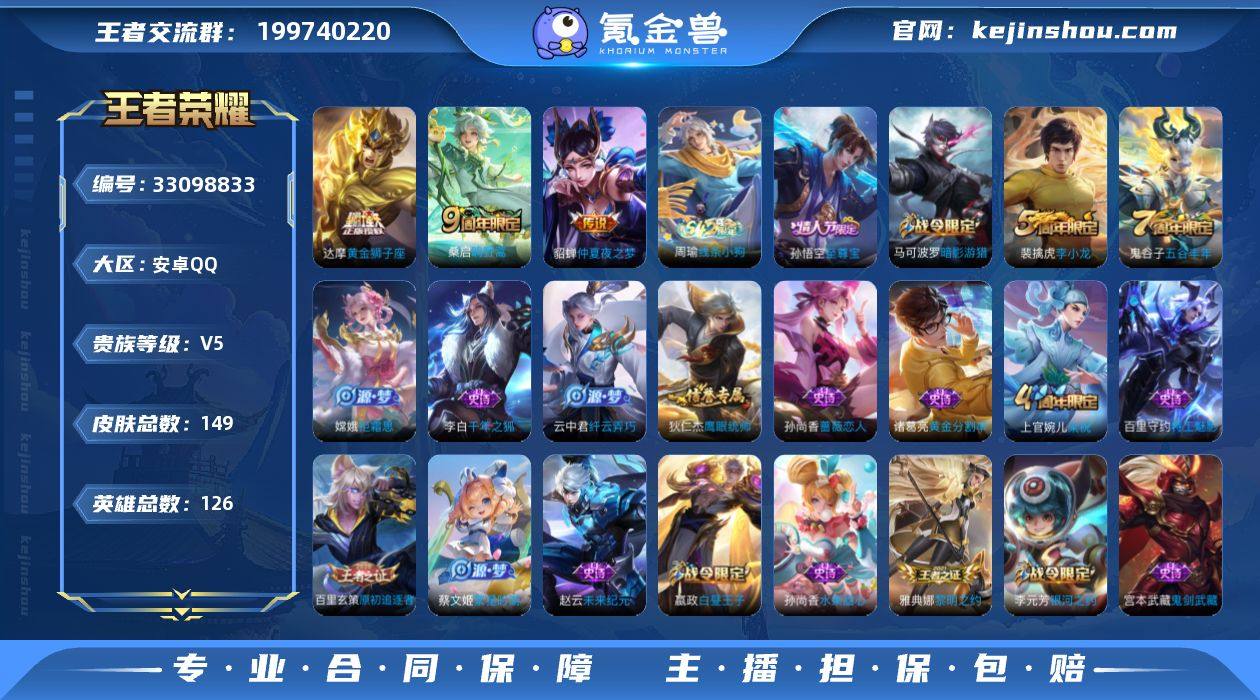 有至尊宝,很多精选战令皮、史诗皮,9个王者印记,五千多分的貂蝉,猴子两百多场七十多的胜率,QQ有一个太阳两个月亮两颗星星
