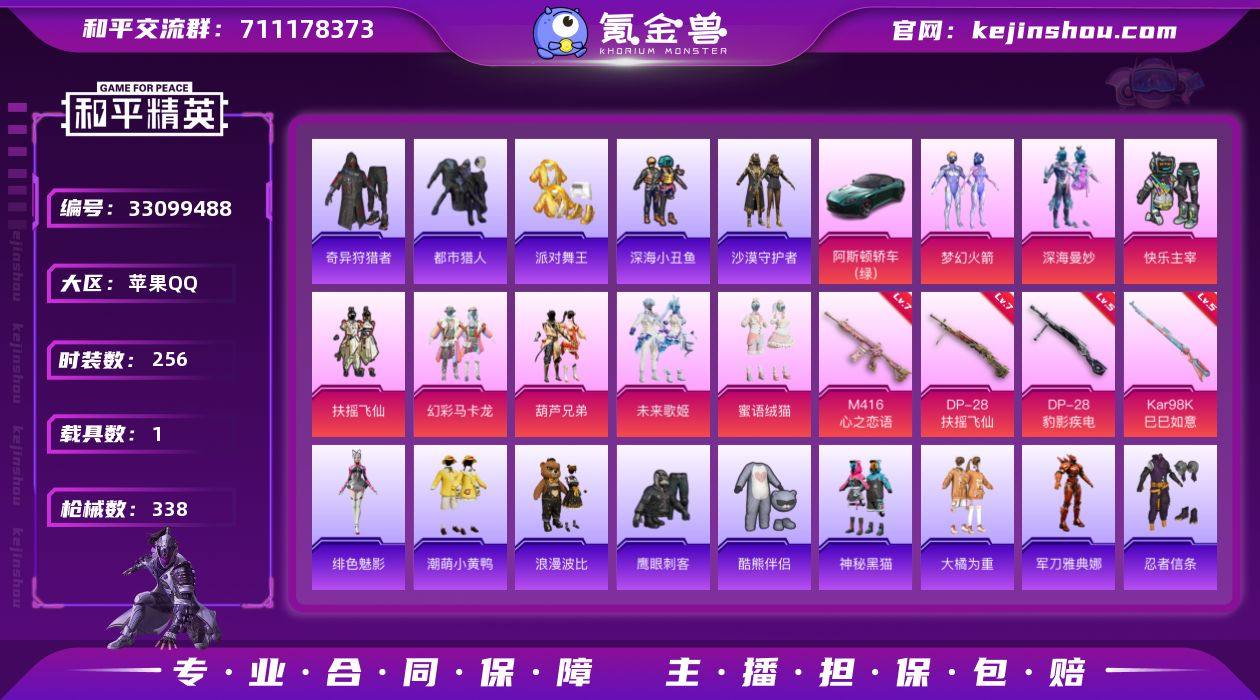 【kyhp1616】苹果 手Q-8粉装-7特效枪-1载具-6粉色飞行器-111500热力值-13王牌印记-256套装-338枪皮 【热门品类】:粉装-梦幻火箭,套装-都市猎人,套装-派对舞王,套装-深海小丑鱼,套装-奇异狩猎者,角色-军刀雅典娜,套装-沙漠守护者,套装-忍者信条,套装-龟仙人,套装-潮萌小黄鸭,套装-暗影哥特,套装-浪漫波比 【粉色套装】:粉装-深海曼妙,粉装-快乐主宰,粉装-梦幻火箭,粉装-扶摇飞仙,粉装-幻彩马卡龙,粉装-葫芦兄弟,粉装-未来歌姬,粉装-蜜语绒猫 【粉色枪皮等级】:M416-心之恋语(七级),UMP45-萌骑冒险(五级),AKS-74U-森灵之息(五级),Kar98K-巳巳如意(五级),Mk14-福马献瑞(五级),DP-28-扶摇飞仙(七级),DP-28-豹影疾电(五级) 【粉色载具】:阿斯顿马丁DBS(绿) 【粉色枪皮】:M416-心之恋语,UMP45-萌骑冒险,AKS-74U-森灵之息,Kar98K-巳巳如意,Mk14-福马献瑞,DP-28-扶摇飞仙,DP-28-豹影疾电 【粉色飞行器】:深海曼妙飞行器,炫彩糖果飞行器,神秘黑猫飞行器,古堡领主飞行器,扶摇飞仙飞行器,曦光华影飞行器 【粉色降落伞】:深海曼妙降落伞,快乐主宰降落伞,幻影战神降落伞,梦幻火箭降落伞,龙虾霸霸降落伞,神秘黑猫降落伞,古堡领主降落伞,...