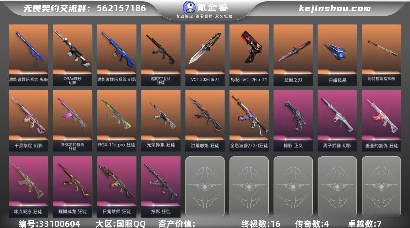 L3144 【性价比】vct26t1标配 vct26篆刀 显卡狂徒 电玩鬼魅 波普狂徒 掠夺狂徒 怜悯之刃 电玩幻影 掠夺正义 颗秒幻影 超时空狂徒 流脓狂徒 多弥尔狂徒 紫金爪刀 刻骨铭心 盖亚狂徒 威龙狂徒 离子幻影 冰点狂徒 天御刀 光荣异象狂徒 莲花幻影 狮子狂徒库存: 43020剩余VP:86剩余R点:60 段位:钻石