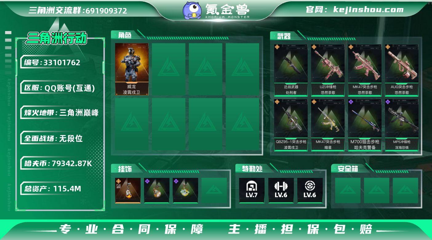 三角洲成品威龙红皮账号 总资产115.3M AW子弹66发 现金7900W 10个6套 1个6头 2个大龟包 赛季3x3任务箱子做完了 部门全2级 6体力6负重 几套金枪皮捆绑包
