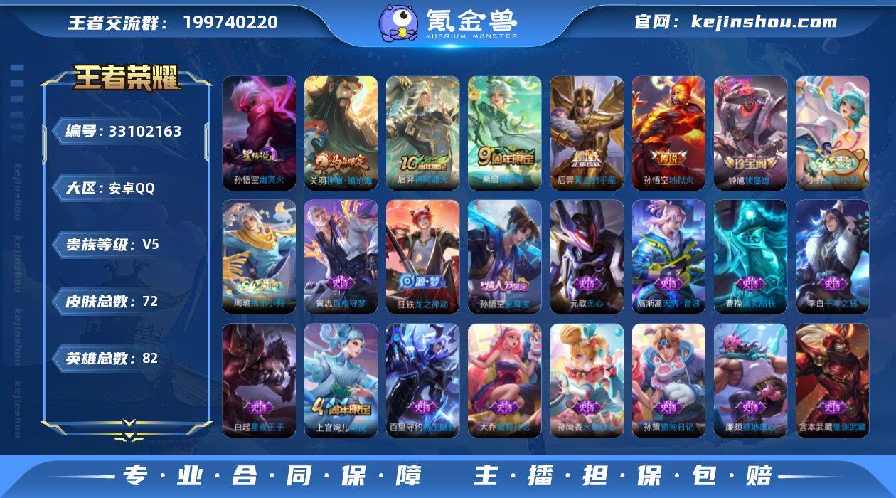 可换绑 【精品小号·关羽马年·地狱火·幽冥火·至尊宝·】1按键 1星传说3王者印记,80五级铭文,可二次KK10557安卓Q-V5-72皮肤-5传说-21史诗【星元皮肤】:孙悟空幽冥火【传说皮肤】:关羽神骥镇沧海,后羿神树通天,桑启鸣野蒿,后羿黄金射手座,孙悟空地狱火【限定皮肤】:姜子牙天穹之誓,狄仁杰阴阳师,元歌无心,项羽海滩派对,孙悟空至尊宝,上官婉儿梁祝【赛季限定】:姜子牙天穹之誓,东皇太一噬灭天穹,甄姬逆浪荇歌,亚瑟荣光之誓【战令限定】:廉颇撼地雄心,周瑜线条小狗,小乔线条小狗【史诗皮肤】:钟馗锁墨魂,周瑜线条小狗,小乔线条小狗,黄忠百相守梦,狂铁龙之律动,廉颇撼地雄心,元歌无心,高渐离天秀音浪,上官婉儿梁祝,大乔猫狗日记,孙策猫狗日记,白起星夜王子,李元芳逐浪之夏,百里守约特工魅影,刘邦德古拉伯爵,孙悟空至尊宝,李白千年之狐,曹操幽灵船长,妲己魅力维加斯,孙尚香水果甜心,宫本武藏鬼剑武藏,王昭君偶像歌手【其他皮肤】:影百相守梦,鲁班七号班班快跑,鬼谷子谜偶窥秘,虞姬溯影追猎,曹操逐霄之志,艾琳鹤鸣心笺,亚瑟荣光之誓,鬼谷子克喵,莱西奥踏浪烽翎,甄姬逆浪荇歌,东皇太一噬灭天穹,盘古敬我三分,姜子牙天穹之誓,...