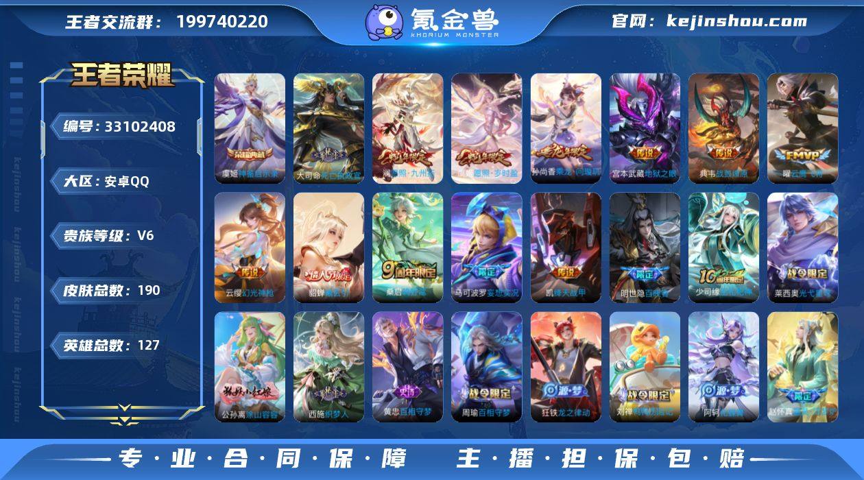 账号亮点:虞姬神鉴启示录 大司命死亡执政官,澜愿照九州拓,虞姬愿照岁时盈,云缨幻光神枪,桑启鸣野蒿,貂蝉曦玄引,典韦战鼓燎原,孙尚香乘龙问璇玑,马可波罗妄想实况,铠绛天战甲,曜云鹰飞将,宫本武藏地狱之眼361 【英雄全皮】:孙权全皮,空空儿全皮 【荣耀典藏】:虞姬神鉴启示录 【传说皮肤】:大司命死亡执政官,澜愿照九州拓,虞姬愿照岁时盈,云缨幻光神枪,桑启鸣野蒿,貂蝉曦玄引,典韦战鼓燎原,孙尚香乘龙问璇玑,马可波罗妄想实况,铠绛天战甲,曜云鹰飞将,宫本武藏地狱之眼 【限定皮肤】:蔡文姬夏日便利店,大乔绒语心约,虞姬夏日便利店,姜子牙天穹之誓,杨戬破阵退雄兵,狄仁杰阴阳师,赵云皇家上将,孙尚香蔷薇恋人,高渐离玩趣恶龙,吕布猎兽之王,马可波罗妄想实况,狄仁杰魔术师,项羽海滩派对,裴擒虎李小龙,嫦娥拒霜思,鲁班大师探海日志,阿古朵江河有灵,张良古海寻踪,蒙犽百解令,高渐离燃音魔法,妲己灵卜魔法,鬼谷子天穹祈灯,伽罗琥珀纪元,孙尚香乘龙问璇玑,貂蝉曦玄引,沈梦溪龙舞盛年,鲁班七号蔬乡物语,李元芳蔬乡物语,刘邦剑破天穹,程咬金群星魔术团,镜青焰无极,项羽苍威无极,刘备异域游侠,芈月浮光幕影,周瑜熔金海岸...