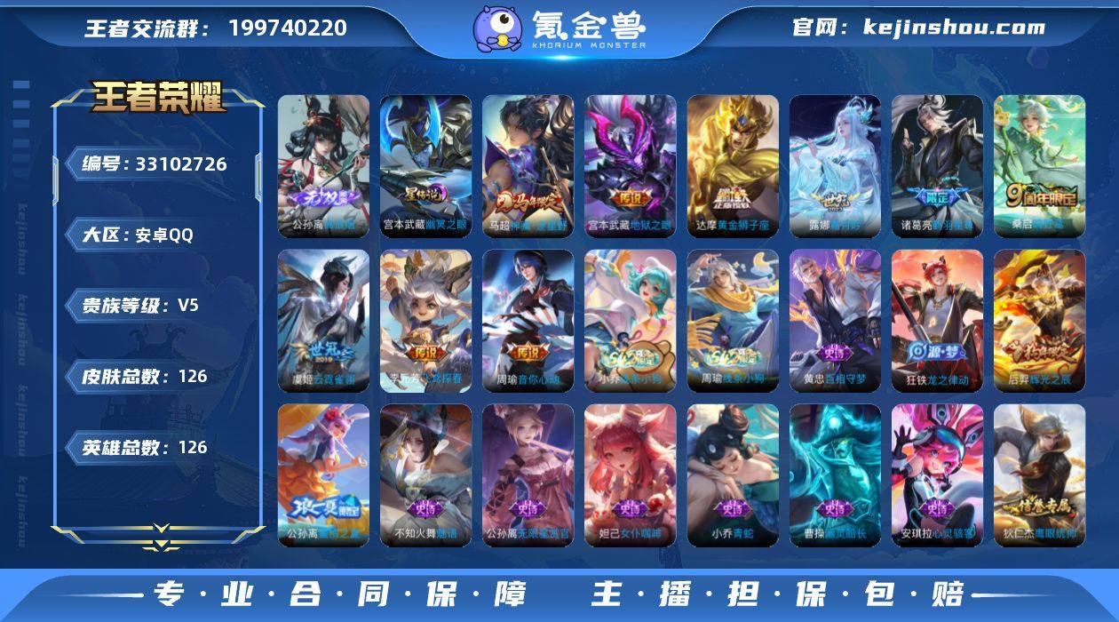 【编号93058,可秒换绑】【店长推荐!极品公孙离离恨烟小号!带有新出来的马超马年限定和露娜的世冠,再就是诸葛亮的限定鹤羽仙尊,再就是像积分夺宝即将抽出荣耀水晶!!】 ,,安卓Q-V5-尊贵铂金IV段位-126英雄-126皮肤-1无双-9传说-32史诗 【无双皮肤】:公孙离离恨烟 【传说皮肤】:马超神骥逐星野,桑启鸣野蒿,露娜霜月吟,诸葛亮鹤羽星尊,周瑜音你心动,李元芳飞鸢探春,虞姬云霓雀翎,达摩黄金狮子座,宫本武藏地狱之眼 【限定皮肤】:白起狰,公孙离离恨烟,狄仁杰阴阳师,赵云皇家上将,墨子神迹守卫,鲁班七号狮舞东方,夏侯惇朔风刀,甄姬游园惊梦,狄仁杰魔术师,狄仁杰万华元夜,项羽海滩派对,老夫子醍醐杖,老夫子航海奇遇记,程咬金演武夺筹,牛魔御旌,后羿辉光之辰,钟馗神迹守卫,钟馗驱傩正仪,干将莫邪胡桃夹子,蔡文姬繁星吟游,鬼谷子原初探秘者,诸葛亮鹤羽星尊,苏烈千军破阵,弈星混沌棋,公孙离蜜橘之夏,明世隐疑决卦,狂铁御狮,米莱狄御霄,伽罗天狼溯光者,盾山御銮,上官婉儿梁祝 【年限皮肤】:后羿辉光之辰 【赛季限定】:白起狰,狂铁御狮,米莱狄御霄,牛魔御旌,盾山御銮,夏侯惇朔风刀,弈星混沌棋,明世隐疑决卦,老夫子醍醐杖,鬼...