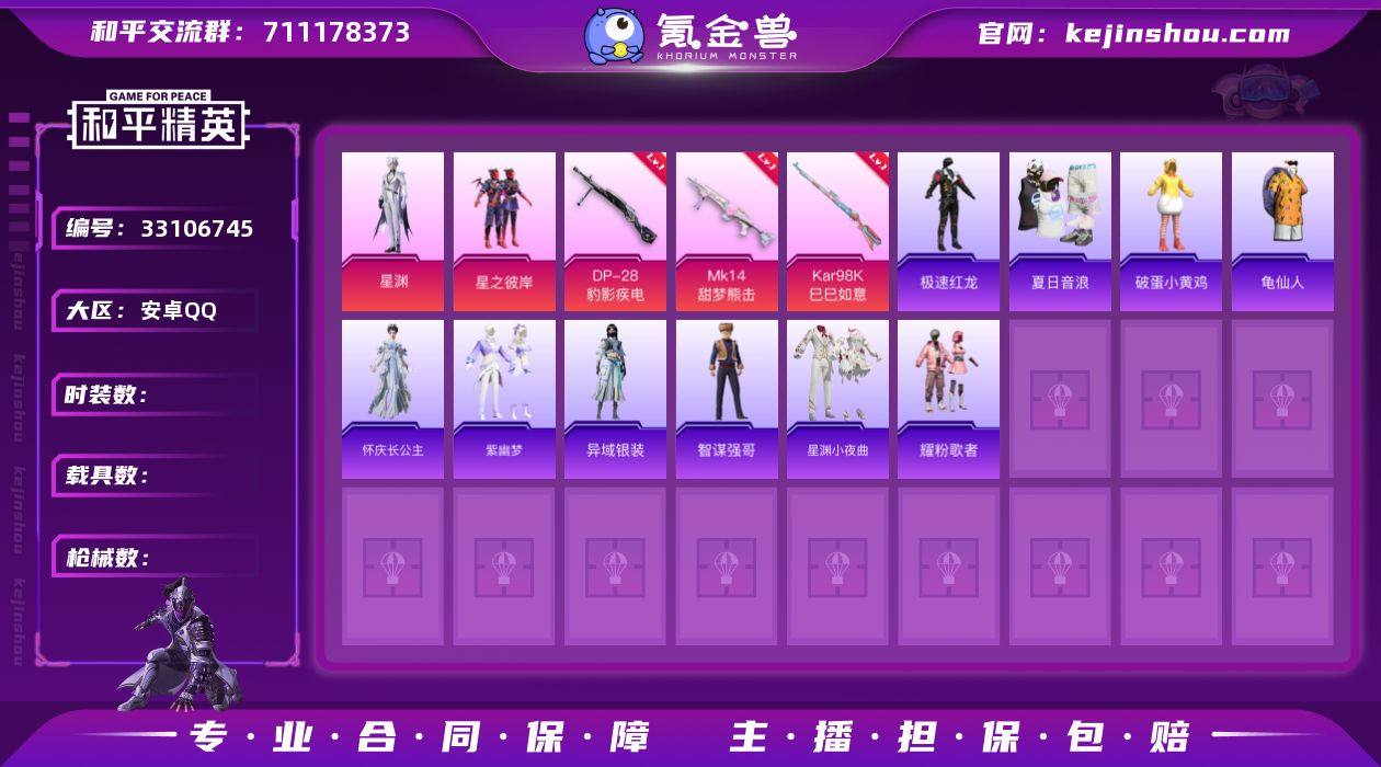 DSH2474安卓手Q-1粉装-7特效枪-133套装-161枪皮-10王牌印记-不朽星钻Ⅰ-43462热力值【1粉装】星之彼岸【7特效枪】UMP45-萌骑冒险[3级],Mk14-甜梦熊击[5级],Kar98K-巳巳如意[5级],DP-28-豹影疾电[5级],AKS-74U-森灵之息[5级],ACE32-萌骑漫游[4级],Mk14-福马献瑞[5级]【7飞行器】狂鲨锋刃飞行器,异域银装飞行器,登顶巅峰飞行器,破刃行动尾迹,马上有福飞行器,顶峰精英尾迹,炫彩糖果飞行器【286其它衣服和枪皮】SS27特训,星途旅人,迅捷龙虾,青年教官,蓝彩潮人,旭日情侣,雪国风尚,蝶变,SS35特训,云魄琉璃,SS22特训,森林游猎者,绮丽涂鸦,萌黄之夏,云朵鹅,星梦畅游,深蓝色名流,巳巳如意,狙击之神,冷焰舞者,玉兔迎春,绯格组合,龙的传人,都市漫游者,街头潮人,雪绒豹,特战装甲,大橘大利,破蛋小黄鸡,飞行日记,暗黑骑手,角色-孙斩天,长空猛禽,红色运动,黄色运动,萌鸡速递,青玉碎影,魅力单车,萌趣颜团子,战地督导,SS37特训,幻影武者,SS25特训,冰河战士,智谋强哥,格斗先锋,狂鲨锋刃,玲珑侠影,SS24特训,马上有钱,SS20特训,夏日音浪,牛气满满,幻世战舞者,元素星魂,军械专家,SS36特训,缤纷果语,春日漫步,王牌教练,薄荷星砂,雨过天青,黄色伏地魔,游乐,破晓战魂,元气之梦,极速红龙,野性山猫,SS18特...