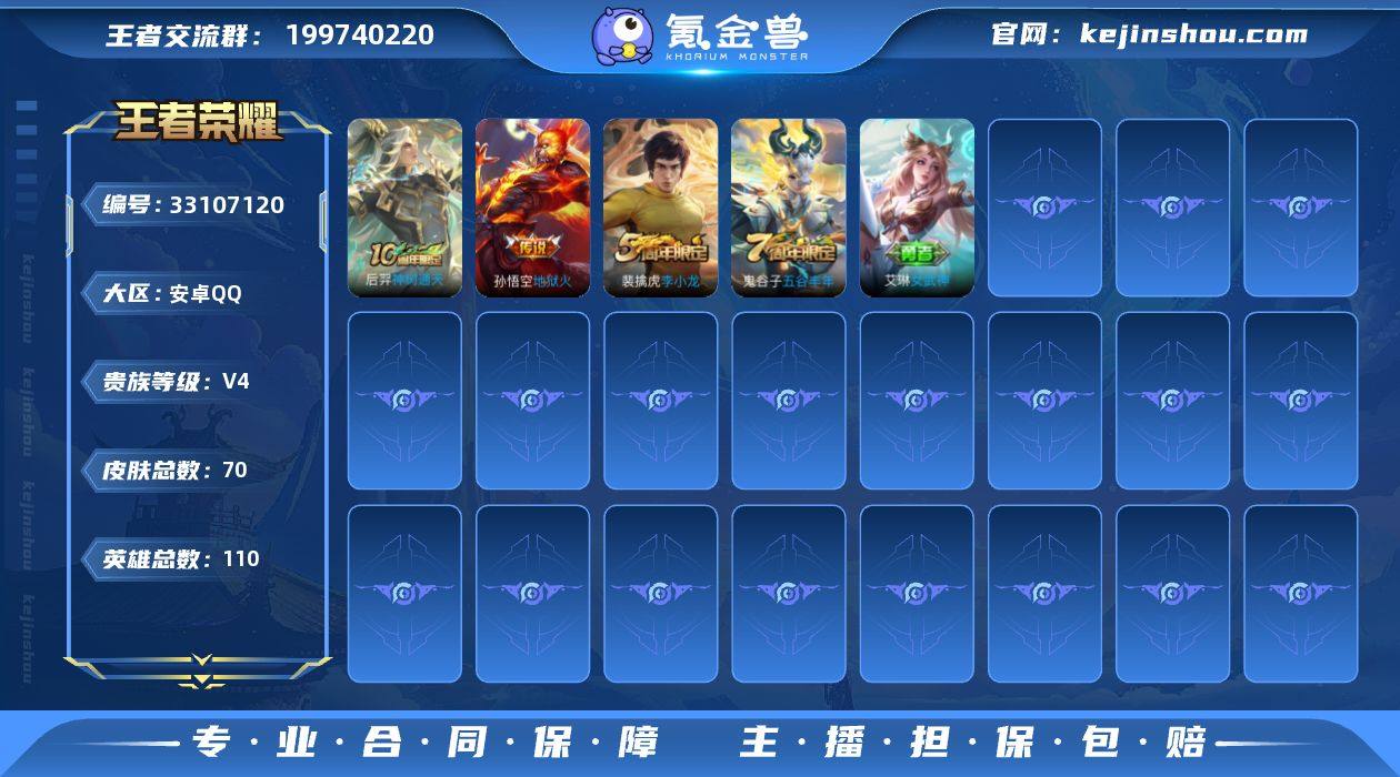 安卓Q 可二次 3传说110英雄70皮肤 神骥镇沧海 神树通天 地狱火 逐霄之志 原初探秘者 李小龙 暗隐猎兽者 特工魅影 女武神 修罗 紫霞仙子 功夫厨神 圣诞恋歌 幽灵船长 暗夜贵公子 偶像歌手 鬼剑武藏 拳王 沙漠行僧 金庭之子 大漠名商 敏锐之力 云中旅人 水果甜心 古海寻踪 天穹祈灯 埋骨钱 五谷丰年 鹰眼统帅 王者荣耀账号