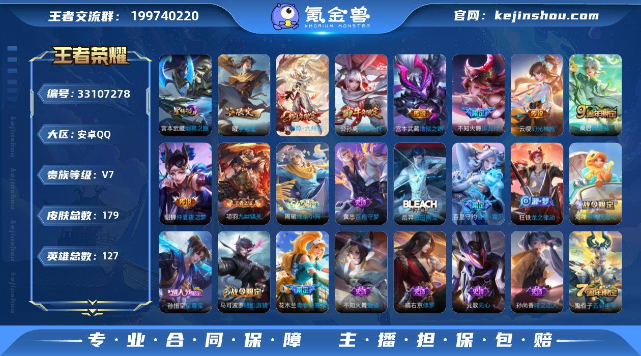 【W6652】【亮点:3.7K低场次质量号】安卓Q-可二次-贵7-127英雄-179皮肤-1星元-8传说-64限定-6按键-贵族积分20121-营地ID:1819834600(热门:澜愿照九州拓,云缨幻光神枪-不知火舞绯月行,曜李逍遥,,公孙离祈雪灵祝,貂蝉仲夏夜之梦,宫本武藏地狱之眼-孙悟空至尊宝) 【星元皮肤】:宫本武藏幽冥之眼