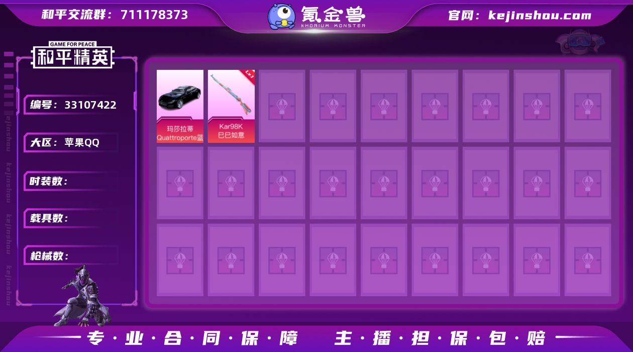 DSH2469【1车1特 玛莎】苹果手Q-1载具-1特效枪-37套装-41枪皮-3王牌印记-荣耀皇冠Ⅳ-12311热力值【1载具】玛莎拉蒂Quattroporte(夜幕蓝)【1特效枪】Kar98K-巳巳如意[3级]【1飞行器】梦幻火箭飞行器【1头盔】梦幻火箭头盔【77其它衣服和枪皮】冰川特警,SS22特训,牛气冲天,青年教官,SS38特训,SS36特训,阳光火鸡,光之冒险,蓝彩潮人,SS21特训,恋语绒绒,涂山之恋,长空猛禽,角色-绯色魅影,飞行日记,魅力单车,娇憨猪猪,迅捷龙虾,湖蓝色名流,SS37特训,玉兔迎春,SS20特训,SS35特训,黄色名流,荣耀,SS31特训,白色伏地魔,牛气满满,幻世战舞者,SS25特训,青玉碎影,完美偶像,精神漫游,蓝色运动,萌趣咩咩,竞技名士,SS24特训,蜜獾-天降萌叽,M416-红色方程式,SCAR-L-玉兔迎春,M762-绯红前夜,S12K-娇憨猪猪,SLR-娇憨猪猪,蜜獾-垂柳戏鸭,M249-破晓战魂,Mini14-涂山之恋,SCAR-L-炫彩节奏,UZI-娇憨猪猪,Mini14-梦幻火箭,汤姆逊-像素花束,ARX-像素花束,撬棍-绯红前夜,QBZ-彩虹符号,Mk14-乌木金纹,VSS-彩虹符号,平底锅-光之冒险,M416-糯团青竹,SKS-炫彩节奏,Kar98K-彩虹符号,S12K-幻世战舞者,AWM-天降萌叽,蜜獾-娇憨猪猪,AUG-耀粉歌者,野牛-天星战神,MG3-乌木金纹,AC-VAL-乌木金纹,M416-绯红前夜,Mk47-...