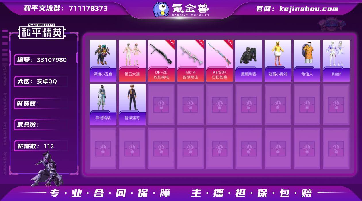 XS11453有二次【3粉装-3特效枪深海小丑鱼身法号 】安卓手Q-3粉装-3特效枪-85套装-112枪皮-5王牌印记-不朽星钻Ⅰ-30349热力值【3粉装】角色-罪夜之冕,角色-异瞳寒姬,第五大道【3特效枪】Kar98K-巳巳如意[5级],Mk14-甜梦熊击[5级],DP-28-豹影疾电[5级]【1稀有】深海小丑鱼【8飞行器】粉色滑翔尾迹,炫彩糖果飞行器,鸡智如我飞行器,破刃行动尾迹,顶峰精英尾迹,登顶巅峰飞行器,狂鲨锋刃飞行器,异域银装飞行器【190其它衣服和枪皮】猛禽,狙击之神,玩偶服-懒羊羊,冷焰舞者,耀粉歌者,黄色运动,元素星魂,幻世战舞者,SS34特训,街头风暴,玲珑侠影,幻影武者,绮丽涂鸦,红釉青花,角色-枫露凝珀,海岛探路者,元气之梦,朱霞炽焰,SS35特训,琴音绮想,猎鹰,青年教官,灼焰舞者,SS30特训,长空猛禽,青涩时光,恋语绒绒,擎苍青焰,粉恋花,街头潮人,星影赞美诗,湖蓝色名流,蓝彩潮人,风迹短诗,异域银装,龟仙人,森林游猎者,黑色伏地魔,战术大师,SS31特训,星途旅人,凌霄紫焰,SS37特训,阳光火鸡,萌鸡速递,暗金炫舞,炫彩糖果,光之冒险,白色伏地魔,香桃花海,青翼流星,书海巡游,漫游都市,龙魂突击队,冰河战士,海盐绵绵冰,蝶变,蓝冰羽,破蛋小黄鸡,酒红色名流,魅力单车,白糯汤圆,薄荷星砂,SS36特训,王牌教练,巳巳如...