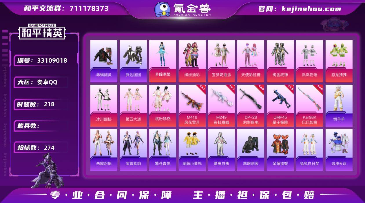 不可二次 安卓 手Q-11粉装-6特效枪-0载具-2粉色飞行器-87433热力值-16王牌印记-218套装-274枪皮 QW264512 【热门品类】:粉装-缤纷油彩,套装-浪漫天命,套装-赤蝎幽灵,套装-胖达团团,套装-忍者信条,套装-龟仙人,套装-潮萌小黄鸭,套装-暗影哥特,熔岩游骑兵连帽夹克,套装-红熊茄茄 【粉色套装】:粉装-宝贝奶油派,粉装-天使彩虹糖,粉装-缤纷油彩,粉装-绚金战神,粉装-岚岚物语,粉装-恐龙拽拽,粉装-冰川幽秘,粉装-第五大道,粉装-桃粉嫣然,角色-异瞳寒姬,角色-月中灵 【粉色枪皮等级】:M416-风花雪月(七级),UMP45-量子极限(五级),Kar98K-巳巳如意(五级),Mk14-福马献瑞(五级),M249-彩虹甜喵(七级),DP-28-豹影疾电(五级) 【粉色枪皮】:M416-风花雪月,UMP45-量子极限,Kar98K-巳巳如意,Mk14-福马献瑞,M249-彩虹甜喵,DP-28-豹影疾电 【粉色飞行器】:炫彩糖果飞行器,星夜魔法师飞行翼 【粉色降落伞】:绝对恒星降落伞,甜心宝贝降落伞,天之羽翼降落伞,环太平洋降落伞,彩虹甜喵降落伞,暗夜鎏金降落伞,第五大道降落伞,未来歌姬降落伞,莲影清波降落伞,精灵梦叶罗丽降落伞,创世·救赎降落伞,临安公主降落伞,樱桃泡泡降落伞,星穹咏叹调降落伞,幻...