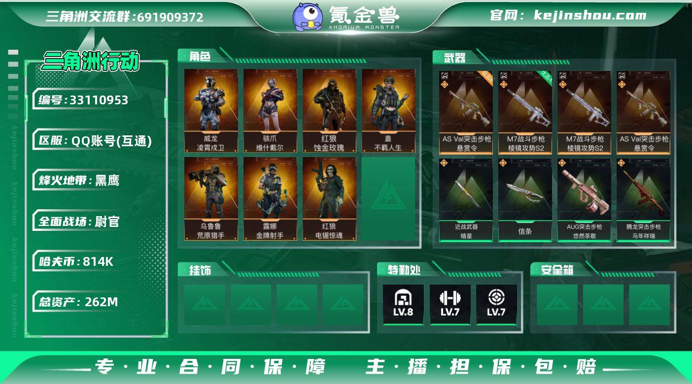 【5869】总资产(M):262M/哈夫币(K):814K/哈夫币(K):814K/传说枪皮数:33/全面战场等级:34_段位:尉官/烽火地带等级:60_段位:黑鹰/红狼-蚀金玫瑰/骇爪-维什戴尔/威龙-凌霄戍卫/红狼-电锯惊魂/露娜-金牌射手(S7)/乌鲁鲁-荒原猎手/蛊-不羁人生/近战-暗星/近战-信条/近战-处刑者2级/近战-黑鹰/M7战斗步枪-棱镜攻势S2/AS Val突击步枪-悬赏令/优品A典藏武器外观-M7战斗步枪-棱镜攻势S2/极品B典藏武器外观-AS Val突击步枪-悬赏令/M4A1突击步枪-蚀金玫瑰/M4A1突击步枪-阿米娅/QBZ95-1突击步枪-凌霄戍卫/ASh-12战斗步枪-鹅鸭杀/K416突击步枪-行动记录/AUG突击步枪-悠然茶歇/M7战斗步枪-怜悯/SG552突击步枪-运动员/SCAR-H战斗步枪-启航/G3战斗步枪-骑士/CAR-15突击步枪-阿米娅/腾龙突击步枪-马年祥瑞/腾龙突击步枪-万金泪冠/KC17突击步枪-电锯惊魂/MK47突击步枪-悠然茶歇/MK47突击步枪-暗星/P90冲锋枪-信条/UZI冲锋枪-悠然茶歇/SR-3M紧凑突击步枪-暗星/勇士冲锋枪-万金泪冠/QCQ171冲锋枪-鹅鸭杀/QJB201轻机枪-鹅鸭杀/M14射手步枪-蛮荒/M14射手步枪-缄花/SKS射手步枪-骑士/SR-25射手步枪-信条/SR-25射手步枪-缄花/R93狙击步枪-维什戴尔/AWM狙击步枪-万金泪冠/.357左轮-缄花/G18-马...