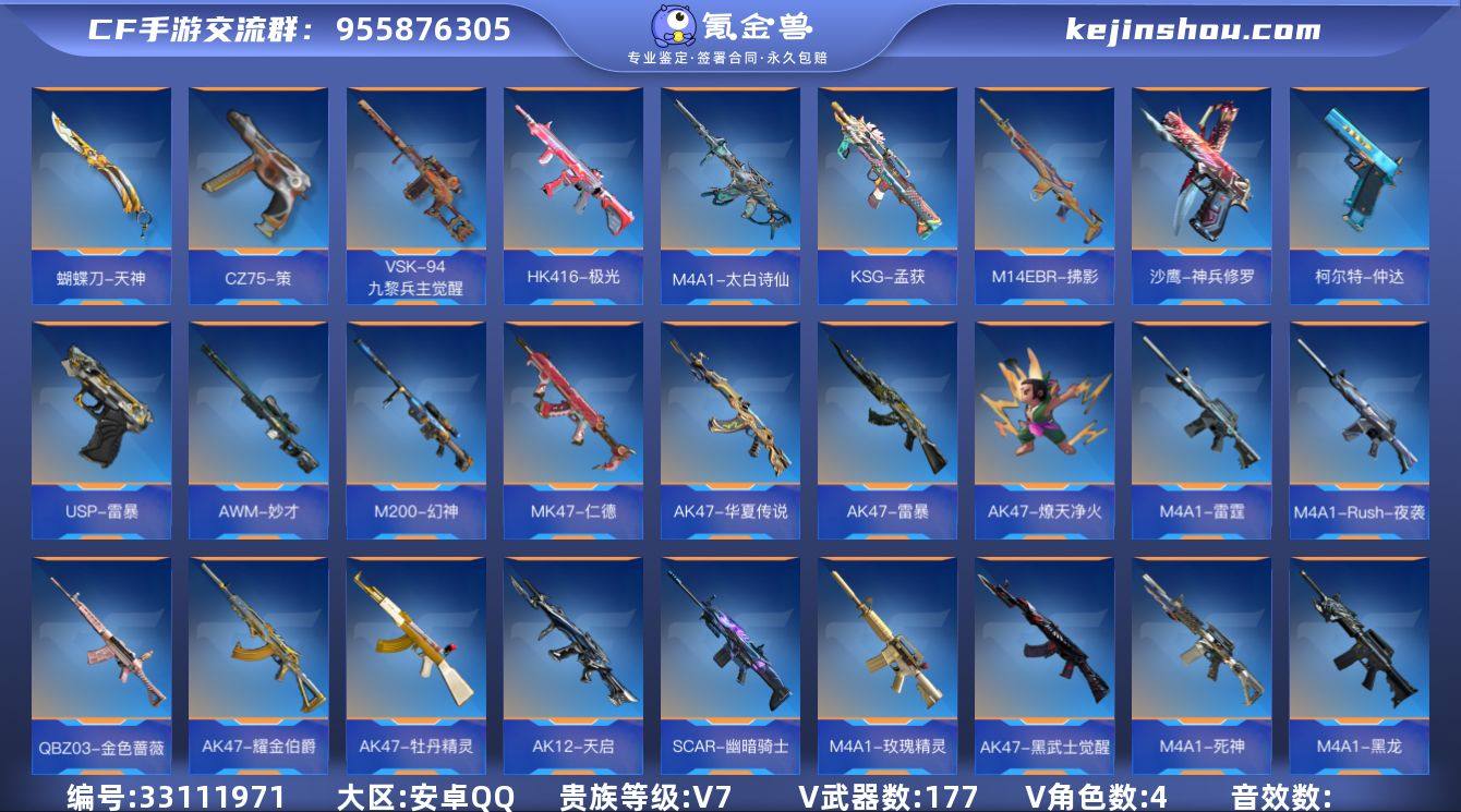 【编号86348可秒换绑】店长推荐特价处理精品号5英雄角色数-176英雄武器数 【王者系列】:王者之戮,王者之影,王者之武,王者之迹,王者之狱,王者之霆 【热门武器】:KSG-孟获,MK47-仁德,M4A1-游骑兵,M200-幻神,AWM-妙才,81式-阿波罗,AN94-盖 【角色】:樱,瞳,祝融夫人*2,零-新生 【英雄武器】:AK47-无影,AK47-黑武士觉醒,AK47-牡丹精灵,AK47-耀金伯爵,AK47-冰魂觉醒,AK47-燎天净火,AK47-雷暴,AK47-华夏传说,AK47-木兰,AK47-谜城烟火,AK47-钢铁狂热,M4A1-雷神*2,M4A1-黑龙,M4A1-死神,M4A1-玫瑰精灵,M4A1-游骑兵,M4A1-Rush-夜袭,M4A1-雷霆,M4A1-千变,M4A1-太白诗仙,SCAR-幽暗骑士*2,SCAR-心动PICK,AN94-盖,M14EBR-拂影,M14EBR-玄武,AK12-天启,QBZ03-金色蔷薇,HK416-极光,MK47-仁德,G3A3-衍神兵,QBZ191-封神榜,AWM-天龙,AWM-妙才,巴雷特-毁灭*4,巴雷特-极光*4,巴雷特-坦克堡垒,M200-幻神,09式狙-天神,98K-黑骑士,98K-星神,VSK-94-九黎兵主觉醒,加特林-堡垒,加特林-蟒蛇,QBB95-极光,MK5-极光,寒霜烈龙,双持斯泰尔-天使*2,DDM4-PDW-星际宇航觉醒,地狱烈炎,KSG-火力竞放,KSG-孟获,Origin12-机变奇蛇觉醒,USP-神罚...