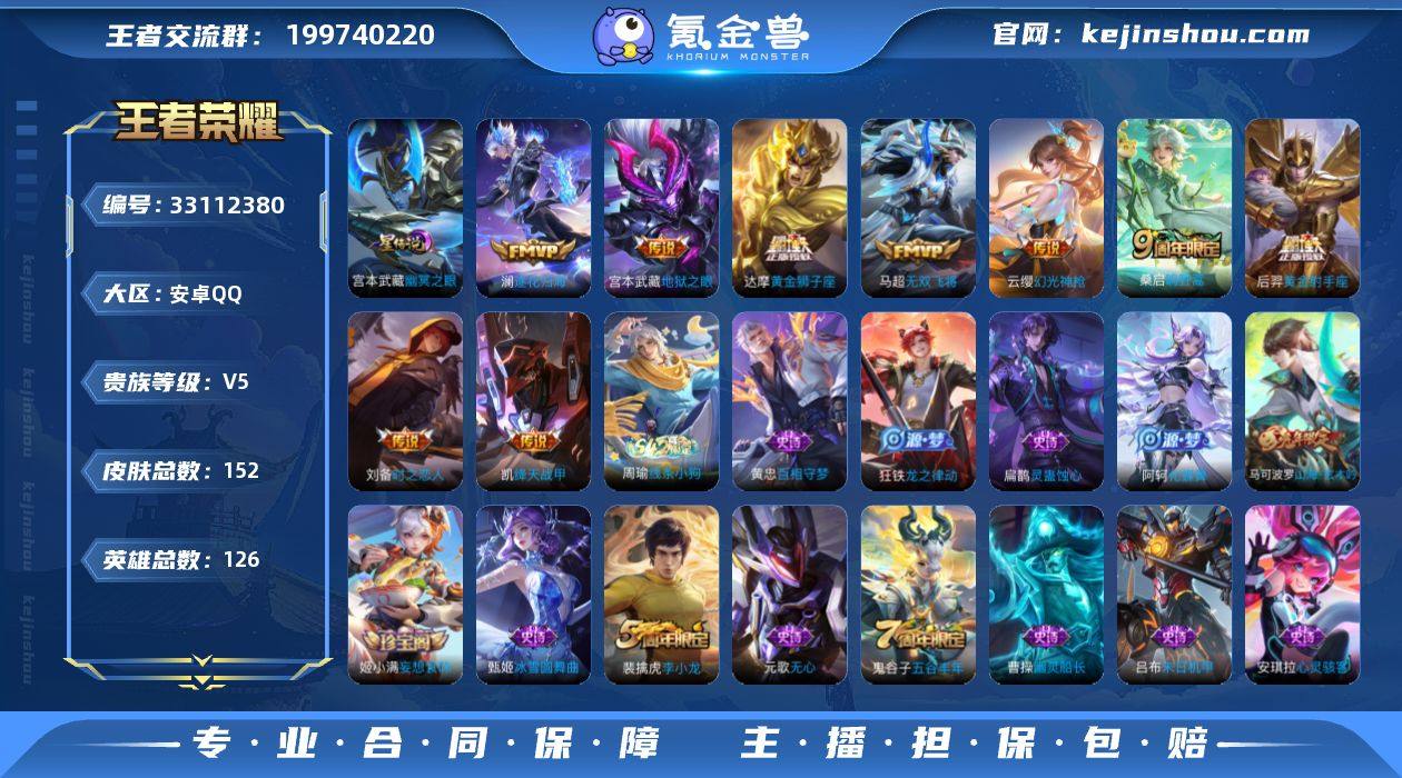 【WZ182192】安卓Q-V5-永恒钻石IV段位-126英雄-152皮肤-10传说-36史诗【英雄全皮】:影全皮【传说皮肤】:马超神骥逐星野,云缨幻光神枪,桑启鸣野蒿,澜逐花归海,马超无双飞将,铠绛天战甲,刘备时之恋人,达摩黄金狮子座,后羿黄金射手座,宫本武藏地狱之眼【限定皮肤】:蒙犽顽岩魄,姜子牙天穹之誓,杨戬破阵退雄兵,狄仁杰阴阳师,赵云皇家上将,高渐离玩趣恶龙,元歌无心,马可波罗山海玄木吟,达摩沙漠行僧,项羽海滩派对,兰陵王金庭之子,李元芳云中旅人,鬼谷子五谷丰年,沈梦溪大漠名商,裴擒虎李小龙,裴擒虎擒涛扼浪,鲁班大师探海日志,桑启海盐诗旅,阿古朵江河有灵,张良古海寻踪,鬼谷子天穹祈灯,姬小满妄想食味,刘邦剑破天穹,程咬金群星魔术团,镜青焰无极,项羽苍威无极,周瑜熔金海岸【年限皮肤】:马可波罗山海玄木吟【赛季限定】:达摩沙漠行僧,兰陵王金庭之子,沈梦溪大漠名商,李元芳云中旅人,桑启海盐诗旅,裴擒虎擒涛扼浪,鲁班大师探海日志,张良古海寻踪,鬼谷子天穹祈灯,刘邦剑破天穹,姜子牙天穹之誓,东皇太一噬灭天穹,太乙真人谧流熔炉,甄姬逆浪荇歌【战令限定】:镜青焰无极,项羽苍威无极,周瑜线条小狗【史诗皮肤】:明世隐百晓...