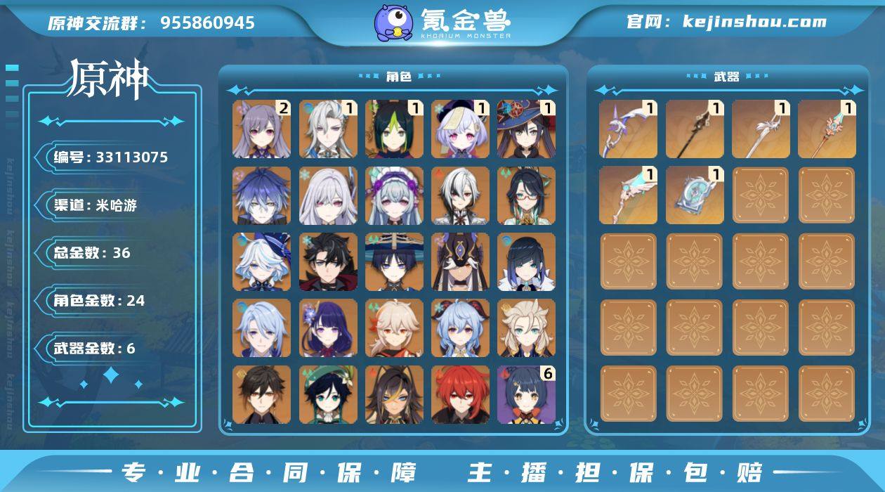 36黄! 冒险等级: 60 2命金色角色: 二命刻晴 1命金色角色: 一命七七,一命莫娜,一命提纳里,一命那维莱特 0命金色角色: 迪卢克,温迪,枫原万叶,钟离,阿贝多,甘雨,雷电将军,神里绫人,夜兰,赛诺,流浪者,迪希雅,莱欧斯利,芙宁娜,闲云,阿蕾奇诺,梦见月瑞希,丝柯克,菲林斯 拥有武器: 天空之翼,四风原典,阿莫斯之弓,风鹰剑,贯虹之槊,天空之脊 1精武器: 天空之翼,四风原典,阿莫斯之弓,风鹰剑,贯虹之槊,天空之脊