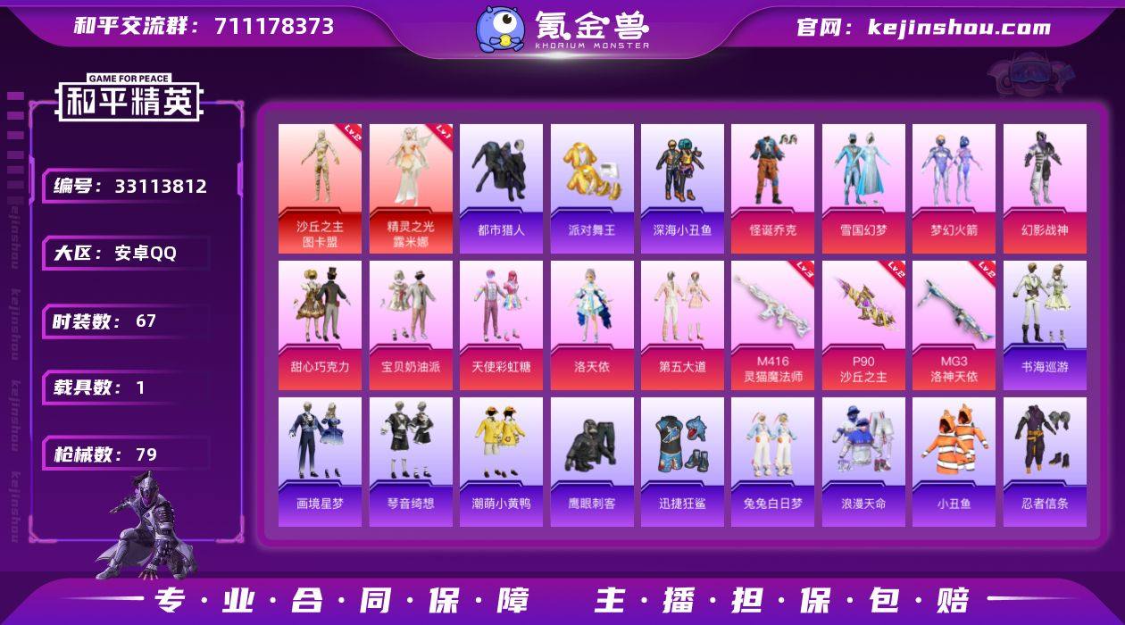 YZJ16739-包人脸-安卓Q-3红装5稀有1载具9粉装7特效枪12热门67套装79枪皮 33509热力值 极品三红装男神身法素材号 4款升级飞行器 M4灵猫 AK暮色玫影 P90沙丘之主 2级图卡盟 艾丽娅 露米娜 小丑 雪国 巧克力三姐妹 洛天依 第五大道 幻影战神 都市 金鞋 红眼罩 深海小丑鱼 兔兔白日梦 小黄鸭 权威小菠萝 鲨鱼服 忍者信条 天命 NV战队服 TT战队服 国宝头 粉熊包 暮色幽蹄 1印记 历史卓越王牌13星 【3红装】 暮色玫影-艾丽娅 (1级) 精灵之光-露米娜 (1级) 沙丘之主-图卡盟 (2级) 【5稀有】 AKM-缤纷海域 都市猎人 浪漫天命 派对舞王 派对舞王(金靴子) 【1载具】 暮色幽蹄 【9粉装】 梦幻火箭 雪国幻梦 宝贝奶油派 天使彩虹糖 甜心巧克力 洛天依 怪诞乔克 幻影战神 第五大道 【7特效枪】 AKM-暮色玫影 (3级) M416-灵猫魔法师 (3级) P90-沙丘之主 (2级) AKS-74U-森灵之息 (5级) MG3-洛神天依 (2级) Mk14-福马献瑞 (5级) UMP45-萌骑冒险 (2级) 【12热门】 小丑鱼 潮萌小黄鸭 鹰眼刺客 兔兔白日梦 迅捷狂鲨 深海小丑鱼 NV战队服 TT战队服 暗影哥特 忍者信条 漫步者 弄潮海豚 【1飞行器】 幻海精灵飞行器 【6头盔】 国宝胖达头盔 梦幻火箭头盔 雪国精灵头盔 甜心宝贝头盔 幻影战神头盔...