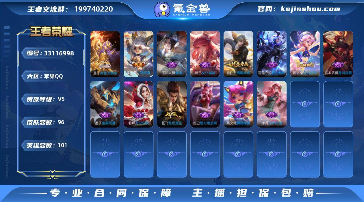 V5 3传说 101英雄 96皮肤 可修改实名 女号
