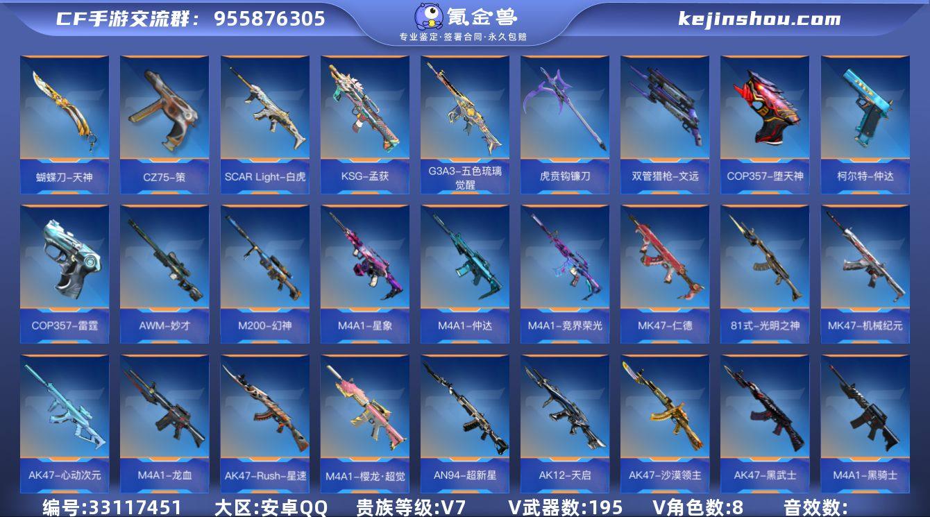 【CFMG1752】VIP7/195V/11王者/仲达套/仁德套/幻神套/孟获套/仲康套/王者之力/王者之影/王者之心/王者之迹/王者之狱/王者之魂/王者之隐/王者之霆/王者之誉/M12S-雷霆王者/王者之尊/KSG-孟获/CZS2-仲康/AN94-盖/81式-光明之神/MK47-仁德/M4A1-仲达/M4A1-星象/M4A1游骑兵/M200-幻神/AWM-妙才/VEPR12-宙斯/81式-阿波罗/COP357-雷霆/COP357-堕天神/M4A1-游骑兵-寒霜/M4A1-游骑兵-紫魇/M4A1-游骑兵-枪娘/M4A1-仲达-过载/SCAR-文远-过载/AWM-妙才-过载/王者之力-HeartShot/M12S-雷霆王者-冰霜奇迹/王者之业-冰霜奇迹/王者之隐-冰霜奇迹/萝拉/职场灵狐赛事经理/蝉/妩媚-X/炽天使-X/零-新生/步练师/刀锋-枪战王者/AK47-无影/AK47-火麒麟/AK47-黑武士/AK47-沙漠领主/AK47-Rush-星速/AK47-心动次元/M4A1-雷神/M4A1-黑骑士/M4A1-樱龙·超觉/M4A1-龙血/M4A1-竞界荣光/M4A1-堕天神/SCAR Light-白虎/AN94-超新星/M14EBR-葫芦山庄/AK12-天启/HK417-炎龙铠甲/G36-李星云/MK47-机械纪元/G3A3-五色琉璃觉醒/G3A3-衍神兵/QBZ191-帝皇铠甲/AWM-天龙/AWM-赛博时代/AWM-裁决/巴雷特-毁灭/巴雷特-极光/巴雷特-极光-运动宝贝兰/09式狙-天神/98K-星神/TAC-晴舞/GM6-逆骨/VSK-94-金蚀/M12S-天公/M1887-幽...