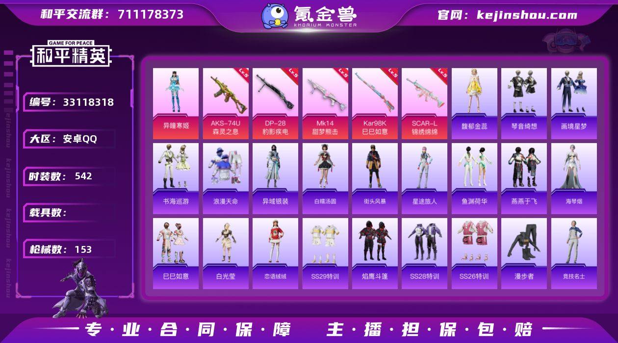 【特价出售】安卓Q-1稀有1粉装7特效枪7热门136套装153枪皮 41999热力值 11印记 历史卓越王牌18星 【1稀有】 浪漫天命 【1粉装】 异瞳寒姬 【7特效枪】 SCAR-L-锦绣绵绵 (5级) AKS-74U-森灵之息 (5级) Kar98K-巳巳如意 (5级) DP-28-豹影疾电 (5级) Mk14-甜梦熊击 (5级) Mk14-福马献瑞 (4级) ACE32-萌骑漫游 (5级) 【7热门】 龟仙人 呆萌铁蟹 鹰眼刺客 漫步者 破蛋小黄鸡 极速红龙 M24-奇异狩猎者 【1飞行器】 繁龙极客飞行器 【1头盔】 深海小丑鱼头盔 【2背包】 幻影战神背包 深海小丑鱼背包