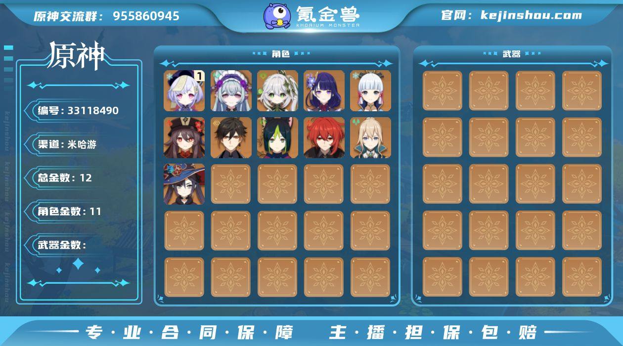 【YSA1097】55级/12黄/女主/11个五星角色/雷电将军/胡桃/钟离/纳西妲/迪卢克/琴/神里绫华/莫娜/一命七七/梦见月瑞希/提纳里