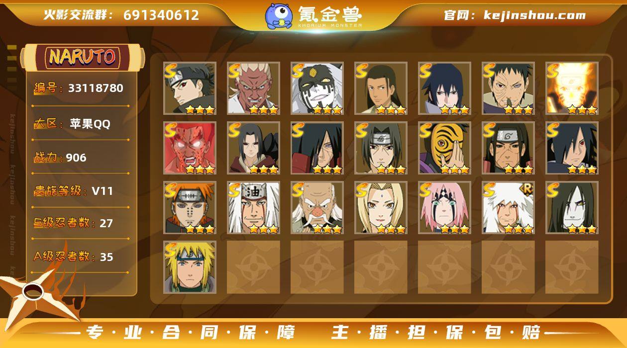 [18384060]V11 27S忍 35A忍 17通灵 906.2W战力 可二次 可修改实名 【S级忍者】宇智波止水「须佐能乎」,艾「忍界大战」,大筒木桃式,宇智波斑「秽土转生·解」,千手柱间·木叶创立,宇智波佐助「永恒万花筒」,神秘面具男 「红夜之刃」,春野樱 「忍界大战」,漩涡鸣人 「九喇嘛连结」,大野木 「忍界大战」,迈特凯「死门」,宇智波斑 「木叶创立」,宇智波带土 「忍界大战」,千手柱间「秽土转生」,自来也 「舞之豪杰」,旗木卡卡西「须佐能乎」,大筒木舍人 「最终章」,自来也 「传说中的三忍」,漩涡鸣人·宇智波佐助,宇智波鼬「秽土转生」,宇智波鼬 「须佐能乎」,佩恩「天道」,波风水门,大蛇丸,自来也,纲手