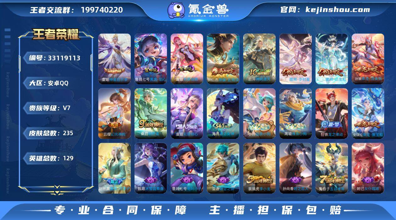 安卓Q-V7-至尊星耀III段位-129英雄-235皮肤-1典藏皮肤-8传说-61史诗 【英雄全皮】:敖隐全皮,影全皮 【荣耀典藏】:虞姬神鉴启示录 【传说皮肤】:狄仁杰神骥赴朔漠,后羿神树通天,妲己愿照众生和,虞姬愿照岁时盈,云缨幻光神枪,桑启鸣野蒿,孙策乘龙淬吴钩,虞姬无限倾心 【限定皮肤】:大乔绒语心约,狄仁杰阴阳师,赵云皇家上将,孙尚香蔷薇恋人,庄周蜃楼王,庄周高山流水,高渐离玩趣恶龙,钟无艳超时空战士,夏侯惇朔风刀,甄姬落雪兰心,狄仁杰魔术师,狄仁杰万华元夜,项羽海滩派对,老夫子醍醐杖,程咬金演武夺筹,兰陵王金庭之子,亚瑟狮心王,牛魔御旌,后羿圣弓游侠,李元芳云中旅人,虞姬无限倾心,钟馗驱傩正仪,杨玉环遇见飞天,干将莫邪真爱魔法,雅典娜单词大作战,蔡文姬繁星吟游,鬼谷子原初探秘者,鬼谷子五谷丰年,苏烈千军破阵,弈星混沌棋,沈梦溪大漠名商,明世隐疑决卦,裴擒虎李小龙,裴擒虎擒涛扼浪,狂铁御狮,米莱狄御霄,云中君纤云弄巧,盾山御銮,上官婉儿梁祝,嫦娥拒霜思,蒙犽狂想玩偶喵,鲁班大师探海日志,桑启海盐诗旅,艾琳女武神,阿古朵江河有灵,张良古海寻踪,高渐离燃音魔法,妲己灵卜魔法,鬼谷子天穹祈灯,安琪拉乘龙聚宝...