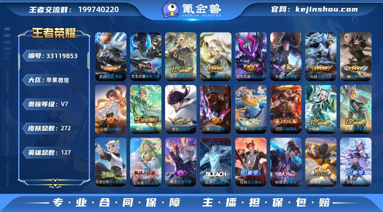 AL696194 【 无防沉迷实锤!V7带10款传说,视频验号放心拍】 皮肤数272 星传说皮肤数1 英雄数127 营地id1870423601 贵族等级【文本】贵族7级 【贵族7级】 【是】 【启用】 【是】 【是】 【否】 星元皮肤1 荣耀典藏1 内测皮肤4 限定皮肤75 赛季限定23 史诗皮肤78 战令限定19 勇者皮肤138 其他皮肤44 星元皮肤:宫本武藏幽冥之眼; 荣耀典藏:李白鸣剑曳影; 内测皮肤:孙尚香蔷薇恋人,姬小满妄想食味,干将莫邪胡桃夹子,高渐离玩趣恶龙; 限定皮肤:百里玄策罗小黑战记,沈梦溪龙舞盛年,曹操逐霄之志,少司缘巫礼祀神,孙尚香蔷薇恋人,女娲万灵启世,公孙离涂山容容,鬼谷子克喵,白起死霸装,狂铁龙之律动,后羿石田雨龙,蒙恬荣光圣徽,姬小满小满鸭,钟馗虚灵犬护,阿古朵布丁狗之约,阿轲化蝶舞,赵怀真器灵浮梦炉,孙膑茶境仙,马超访茗客,太乙真人谧流熔炉,百里玄策原初追逐者,百里守约百相守梦,老夫子百相守梦,吕布逐霄战戟,东皇太一噬灭天穹,桑启鸣野蒿,蒙犽顽岩魄,姜子牙天穹之誓,刘邦剑破天穹,妲己灵卜魔法,高渐离燃音魔法,姬小满妄想食味,伽罗琥珀纪元,嫦娥漠中幻影,鬼谷子天穹祈灯,云中君纤云弄巧,嫦娥拒霜思,蒙犽百解令,阿古朵江河有灵...
