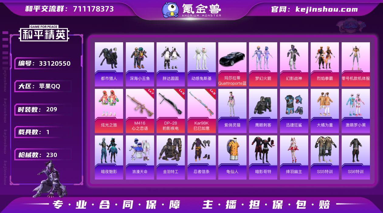 【店主推荐捡漏号!可直接换绑】苹果 手Q-5粉装-4特效枪-1载具-1粉色飞行器-78629热力值-19王牌印记-209套装-230枪皮【热门品类】:粉装-梦幻火箭,套装-浪漫天命,套装-都市猎人,套装-深海小丑鱼,套装-胖达圆圆,套装-金羽特工,套装-忍者信条,套装-动感兔斯基人偶服,套装-龟仙人,套装-暗影哥特【粉色套装】:粉装-幻影战神,粉装-梦幻火箭,粉装-烈焰拳霸,角色-零号机款机体服,粉装-炫光之旅【粉色枪皮等级】:M416-心之恋语(七级),Kar98K-巳巳如意(五级),Mk14-福马献瑞(四级),DP-28-豹影疾电(五级)【粉色载具】:玛莎拉蒂Quattroporte(夜幕蓝)【粉色枪皮】:M416-心之恋语,Kar98K-巳巳如意,Mk14-福马献瑞,DP-28-豹影疾电【粉色飞行器】:梦幻火箭飞行器