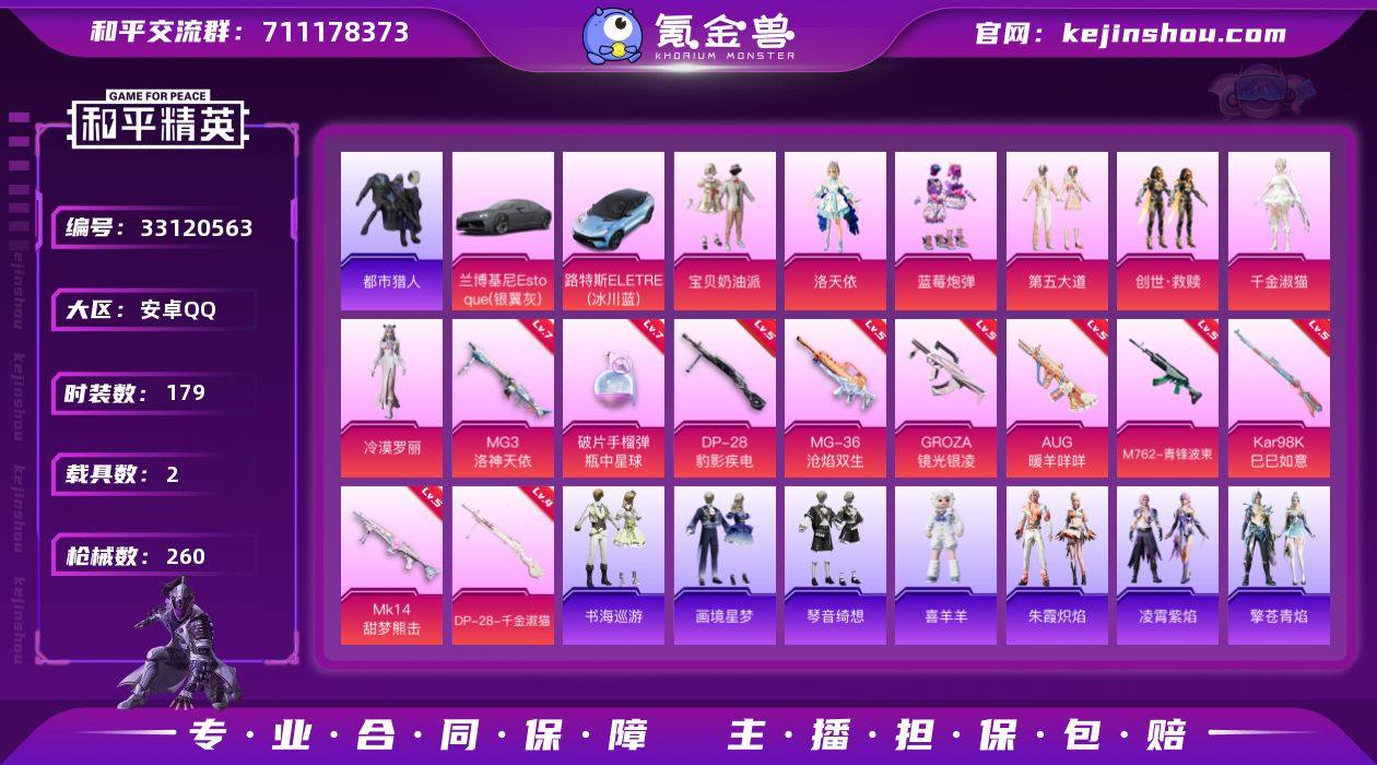 【特价出售/店主推荐】安卓 手Q-7粉装-13特效枪-2载具-3粉色飞行器-78921热力值-15王牌印记-179套装-260枪皮【热门品类】:套装-浪漫天命,套装-都市猎人,套装-小丑鱼,角色-军刀雅典娜,套装-暗影哥特,套装-糯粉咩咩,角色-Mark.06,套装-红熊茄茄【粉色套装】:粉装-宝贝奶油派,角色-洛天依,粉装-蓝莓炮弹,粉装-第五大道,套装-创世·救赎,角色-千金淑猫,角色-冷漠罗丽【粉色枪皮等级】:GROZA-镜光银凌(五级),AUG-暖羊咩咩(五级),M762-青锋波束(五级),UMP45-萌骑冒险(四级),AKS-74U-森灵之息(五级),Kar98K-巳巳如意(五级),Mk14-甜梦熊击(五级),Mk14-福马献瑞(二级),DP-28-千金淑猫(四级),DP-28-豹影疾电(五级),MG3-洛神天依(七级),MG-36-沧焰双生(五级),破片手榴弹-瓶中星球(七级)【粉色载具】:兰博基尼Estoque(银翼灰),路特斯ELETRE(冰川蓝)【粉色枪皮】:GROZA-镜光银凌,AUG-暖羊咩咩,M762-青锋波束,UMP45-萌骑冒险,AKS-74U-森灵之息,Kar98K-巳巳如意,Mk14-甜梦熊击,Mk14-福马献瑞,DP-28-千金淑猫,DP-28-豹影疾电,MG3-洛神天依,MG-36-沧焰双生,破片手榴弹-瓶中星球【粉色飞行器】:炫彩糖果飞行器,深渊漩涡飞行器