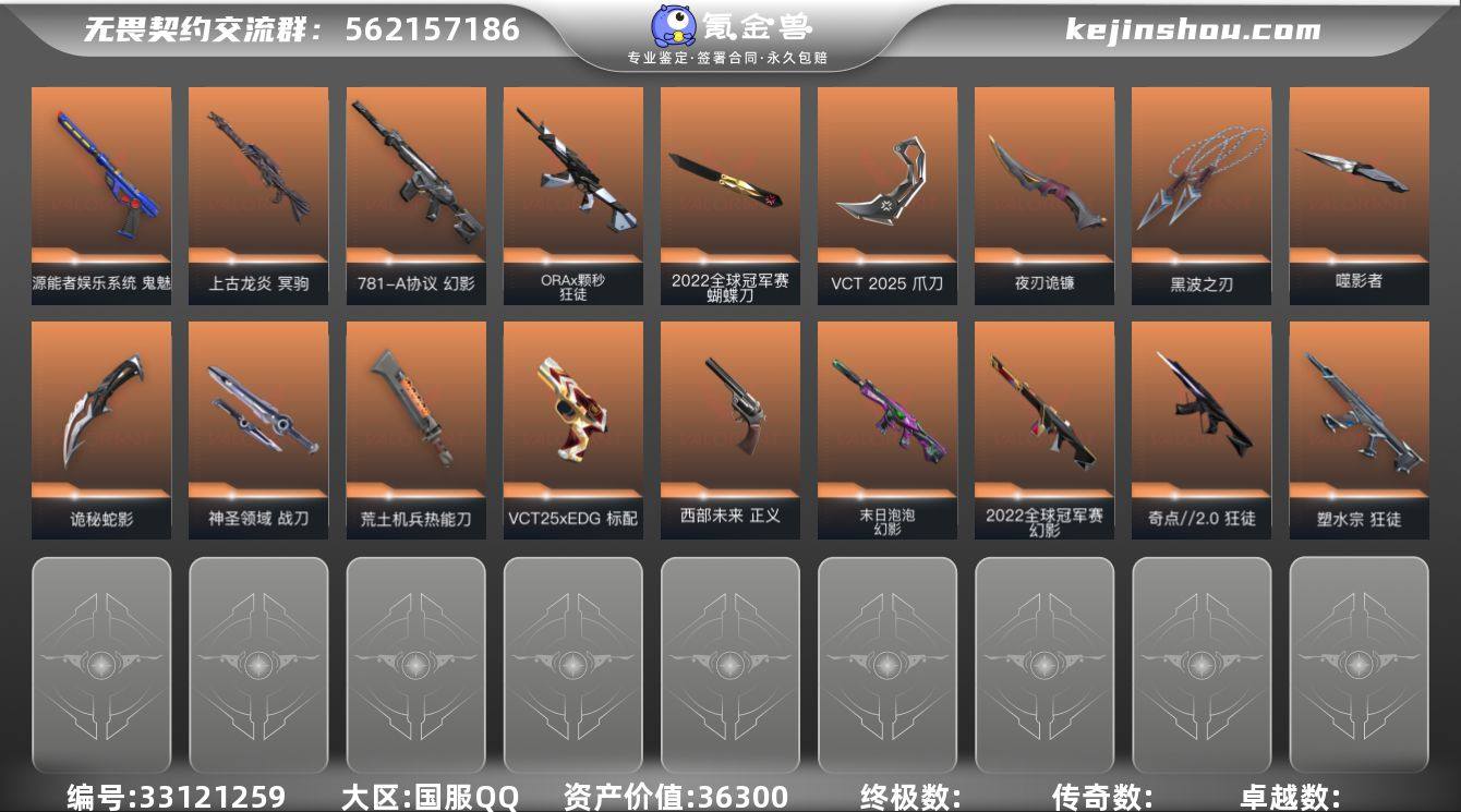 WL667,,【账号状态】无封号,【区服】QQ,【游戏等级】Lv106,【游戏段位】未定级,【剩余V点】148,【剩余R点】135,【皮肤资产价值】36300,【使用R点】755,【英雄数量】26,【皮肤数量】56,【卡面数量】98,【喷漆数量】78,【挂件数量】66,【拥有套装】2022全球冠军赛套装(2022全球冠军赛-幻影,2022全球冠军赛-蝴蝶刀),【拥有近战武器】诡秘蛇影-军刀,神圣领域-战刀,VCT-2025-爪刀,荒土机兵-热能刀,噬影者-簇刃,夜刃诡镰,黑波之刃,,【拥有步枪】末日泡泡-幻影,塑水宗-狂徒,奇点,,2.0-狂徒,ORA-x-颗秒-狂徒,781-A协议-幻影,诡秘蛇影-狂徒,神圣领域-獠犬,神圣领域-幻影,荒土机兵-狂徒,末日之翼-幻影,折光棱晶-戍卫,月球哨兵-戍卫,逆冲蛮牛-獠犬,逆冲蛮牛-戍卫,纳米打击-幻影,,【拥有狙击枪】上古龙炎-冥驹,诡秘蛇影-莽侠,荒土机兵-冥驹,末日之翼-飞将,星云暗涌-冥驹,月球哨兵-莽侠,,【拥有机枪】神圣领域-战神,末日之翼-奥丁,纳米打击-奥丁,,【拥有冲锋枪】荒土机兵-骇灵,折光棱晶-蜂刺,星云暗涌-蜂刺,星云暗涌-骇灵,,【拥有霰弹枪】诡秘蛇影-判官,月球哨兵-雄鹿,逆冲蛮牛-雄鹿,纳米打击-判官,,【拥有手枪】VCT25-...