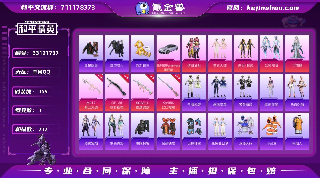 【kyhp1582】苹果 手Q-6粉装-5特效枪-1载具-1粉色飞行器-60921热力值-14王牌印记-159套装-212枪皮 【热门品类】:粉装-缤纷油彩,套装-浪漫天命,套装-赤蝎幽灵,套装-都市猎人,套装-派对舞王,套装-小丑鱼,套装-龟仙人,套装-红熊茄茄 【粉色套装】:粉装-缤纷油彩,粉装-第五大道,套装-创世·救赎,粉装-幻彩电音,角色-宁雨蝶,角色-鸢尾珑雾 【粉色枪皮等级】:SCAR-L-锦绣绵绵(五级),Kar98K-巳巳如意(五级),Mk14-福马献瑞(五级),M417-第五大道(六级),DP-28-豹影疾电(五级) 【粉色载具】:保时捷Panamera(星辰紫) 【粉色枪皮】:SCAR-L-锦绣绵绵,Kar98K-巳巳如意,Mk14-福马献瑞,M417-第五大道,DP-28-豹影疾电 【粉色飞行器】:炫彩糖果飞行器 【粉色降落伞】:梦幻火箭降落伞,洛神天依降落伞,第五大道降落伞,仲夏莫吉托降落伞,未来歌姬降落伞,镜域双华降落伞,金丰海韵降落伞,千金淑猫降落伞,无垠阁降落伞,异瞳寒姬降落伞,炫彩糖果降落伞 【稀有套装】:套装-龟仙人,套装-绒宝小鹅,套装-雪国风尚,套装-炫彩糖果,套装-马上有钱,套装-雏菊兔兔,套装-萝兰蝴蝶,套装-小熊娃娃,套装-糖糖葫芦,套装-青团波波,套装-棉花软糖,角色-摩登魅猫,套装...
