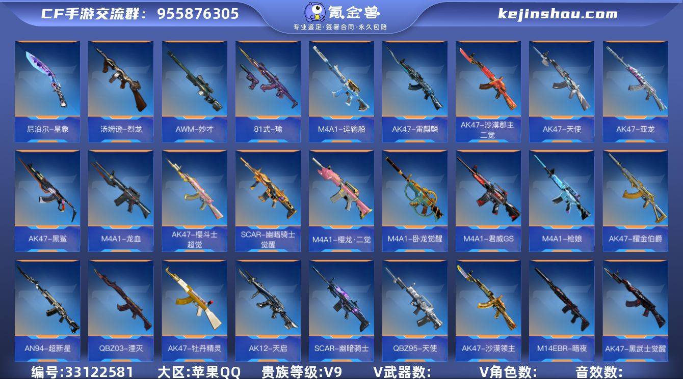 【931839】[16685500]实名: 可修改 贵族等级: V9 v武器: AK47-雷麒麟,AK47-天使,81式-瑜,AK47-亚龙,M4A1-龙血,AK47-樱斗士-超觉,SCAR-幽暗骑士觉醒,擎天,M4A1-卧龙觉醒,M4A1-君威GS,M4A1-枪娘,AK47-耀金伯爵,AN94-超新星,QBZ03-湮灭,AK47-牡丹精灵,AK12-天启,QBZ95-天使,AK47-沙漠领主,AK47-黑武士觉醒,M4A1-黑骑士,AK47-无影,M4A1-雷神,AK47-火麒麟,AWM-妙才,巴雷特-变色龙,巴雷特-毁灭-审判者,巴雷特-金色蔷薇,09式狙-天神,巴雷特-枪娘,巴雷特-雷神,暗杀神,巴雷特-极光,巴雷特-毁灭,加特林-堡垒觉醒,加特林-炼狱,MK5-极光,斯泰尔-恶魔,MK5-机械纪元,双持斯泰尔-天使,汤姆逊-烈龙,地狱烈炎,地狱火,QSZ92-天使,蟒蛇-妙才,双管猎枪-黑骑士,GLOCK18-武圣,沙鹰-天神,左轮-黑武士觉醒,USP-神罚,沙鹰-修罗,丛林匕首-火力竞放,双截棍-天使,双持尼泊尔-变色龙,血阳,尼泊尔-星象,激光短刃-黑骑士,血月,斩神刀,雷霆,战斧-无影,星芒,擎天觉醒,麒麟刺,斩魔剑-天使,神罚战斧,马来剑-毁灭,尼泊尔-火麒麟,弑魔者,屠龙,龙啸,M4A1-运输船,AK47-沙漠郡主-二觉,AK47-黑鲨,M4A1-樱龙·二觉,SCAR-幽暗骑士,M14EBR-暗夜,M200-心动次元,加特林-堡垒,KSG-火力竞放,蟒蛇-火力竞放,丛林匕首-庆龙觉醒,QSZ...