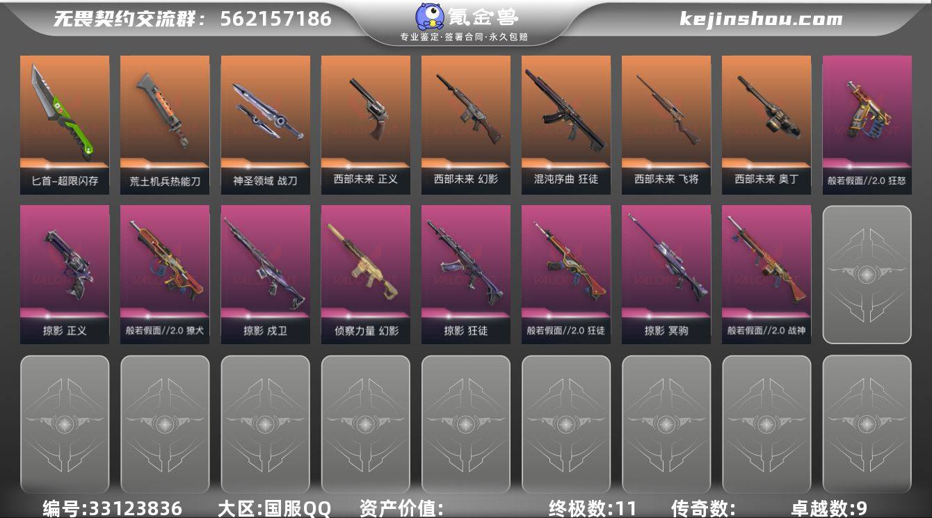 w5021【精品号】神圣战刀 西部套装 鬼丸国纲 班若2.0套装 热能刀 侦查幻影 影刃 掠夺套装 超限匕首 混沌狂徒 库存:29100 剩余VP:149剩余R点:135 段位:黑铁2历史最高:铂金3