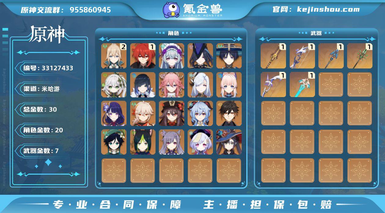 【AYY900】58级/30黄/男主/20个五星角色/7个五星武器/提纳里/八重神子/纳西妲/钟离/雷电将军/胡桃/温迪/甘雨/夜兰/枫原万叶/申鹤/珊瑚宫心海/莫娜/流浪者/二命琴/梦见月瑞希/七七/克洛琳德/一命迪卢克/刻晴/若水/天空之刃/息灾/阿莫斯之弓/赤沙之杖/和璞鸢