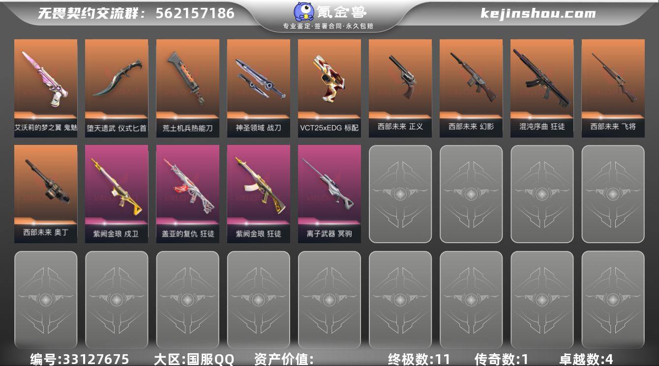 【948639】【套装】:西部未来套装 【英雄】:幻棱,炼狱,暮蝶,钛狐,壹决,铁臂,捷风,雷兹,幽影,不死鸟,贤者,猎枭,蝰蛇,芮娜,奇乐,尚勃勒,霓虹,斯凯,夜露,K/O,盖可,黑梦,钢锁 【近战武器】:近战武器-鬼丸国纲,近战武器-未来开拓者,近战武器-堕天遗武 仪式匕首,近战武器-荒土机兵 热能刀,近战武器-神圣领域 战刀 【狂徒】:狂徒-混沌序曲,狂徒-盖亚的复仇,狂徒-紫阙金琅,狂徒-荒土机兵 【幻影】:幻影-西部未来,幻影-神圣领域,幻影-纳米打击,幻影-西部未来 【戍卫】:戍卫-紫阙金琅,戍卫-逆冲蛮牛,戍卫-月球哨兵 【獠犬】:獠犬-神圣领域,獠犬-逆冲蛮牛 【冥驹】:冥驹-离子武器,冥驹-荒土机兵,冥驹-星云暗涌 【飞将】:飞将-西部未来 【莽侠】:莽侠-月球哨兵 【战神】:战神-神圣领域 【奥丁】:奥丁-西部未来,奥丁-纳米打击 【判官】:判官-纳米打击x 【雄鹿】:雄鹿-逆冲蛮牛,雄鹿-月球哨兵 【骇灵】:骇灵-荒土机兵,骇灵-星云暗涌 【蜂刺】:蜂刺-星云暗涌 【标配】:标配-荒土机兵 【VCT手枪】:标配-VCT25 x EDG 【正义】:正义-西部未来,正义-纳米打击,正义-月球哨兵 【鬼魅】:鬼魅-艾沃莉的梦之翼,鬼魅-星云暗涌 【狂怒】...