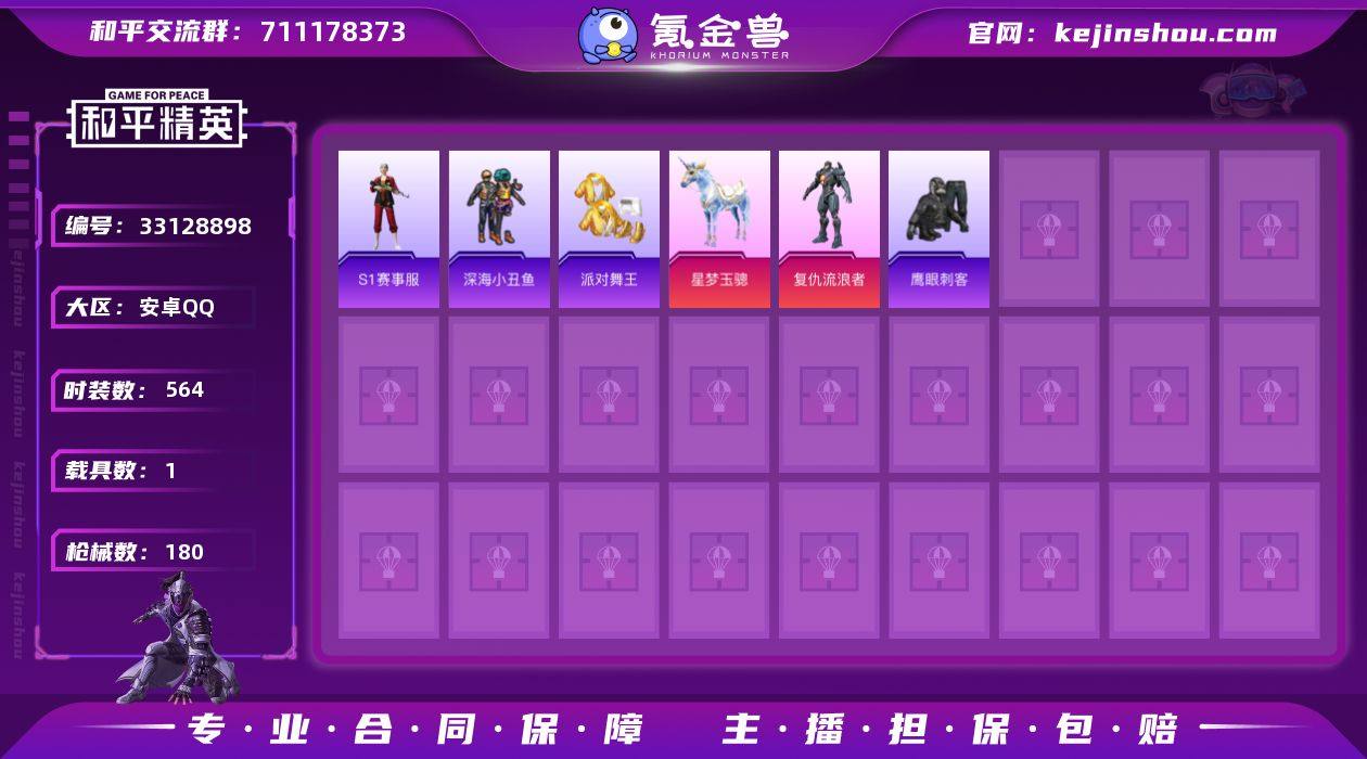 【稀有枪皮】Kar98K-巳巳如意,破片手榴弹-招财进宝,UMP45-萌骑冒险,14-福马献瑞,ARX-无垠阁,DP-28-豹影疾电,AKS-74U-森灵之息