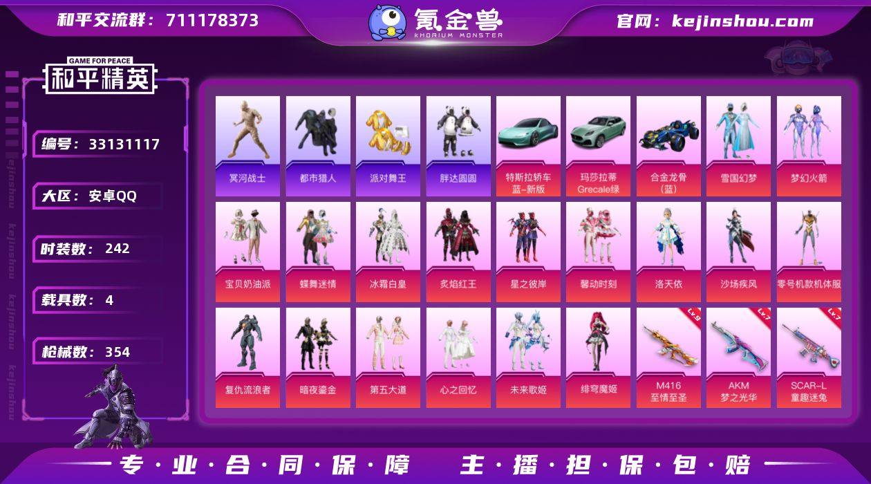 极品素材/老木乃伊/无敌战神框/M416-至情至圣(九级)安卓 手Q-1神装-17粉装-15特效枪-4载具-8粉色飞行器-124653热力值-23王牌印记-242套装-354枪皮【红色神装等级】:灵驹仙姬-云歌(二级)【红色角色神装】:灵驹仙姬-云歌【热门品类】:粉装-雪国幻梦,粉装-梦幻火箭,套装-浪漫天命,套装-都市猎人,套装-冥河战士,套装-派对舞王,套装-小丑鱼,套装-胖达圆圆,套装-龟仙人,套装-暗影哥特,套装-粉红小猪【粉色套装】:粉装-宝贝奶油派,粉装-雪国幻梦,粉装-蝶舞迷情,粉装-梦幻火箭,粉装-冰霜白皇,粉装-炙焰红王,粉装-星之彼岸,粉装-馨动时刻,角色-洛天依,粉装-沙场疾风,角色-零号机款机体服,角色-复仇流浪者,粉装-暗夜鎏金,粉装-第五大道,粉装-心之回忆,粉装-未来歌姬,角色-绯穹魔姬【粉色枪皮等级】:AKM-梦之光华(七级),SCAR-L-童趣迷兔(七级),SCAR-L-灵驹仙姬(三级),M416-五爪金龙(一级),M416-至情至圣(九级),AUG-暖羊咩咩(五级),UMP45-相思残雪(七级),P90-能量风暴(七级),Kar98K-巳巳如意(五级),Mk14-福马献瑞(五级),M417-第五大道(二级),DP-28-暗夜鎏金(五级),DP-28-豹影疾电(五级),PKM-萌骑夺宝(三级),破片手榴弹-热量炸弹(七级【粉色...