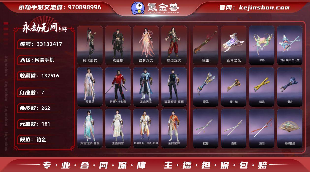 0BA40Z网易手机6个红皮,戎金狼(特木尔),熛怒炼火(季沧海),初代玄女(宁红夜),鲤梦浮光(胡桃),狼主(阔刀),苍穹之光(五眼铳),网易超限,等待换绑期间可以登入网易大神直接进入游戏不影响游戏体验。网易支付未实名,道具货币都是默认已使用.