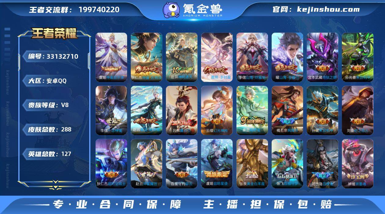 编号A00235 不可二次 v8 288皮肤 1典藏 21传说 神鉴启示录 锁墨魂 愿照·岁时盈 枫霜尽 山海·炽霜斩 山海·苍雷引 吕布-曦玄引 乘龙·铭钟鼎 神骥·赴朔漠 孙行者 虎魄 霸王别姬(男) 飞衡 青龙志 寅虎·御盾 烈魂 辉光之辰 御风骁将 幻光神枪 孙策-末日机甲 碎云 冰锋战神 启明星使 一念神魔 黄金白羊座 地狱之眼 孙尚香-末日机甲 狄仁杰-超时空战士 时之恋人(男) 鸣野